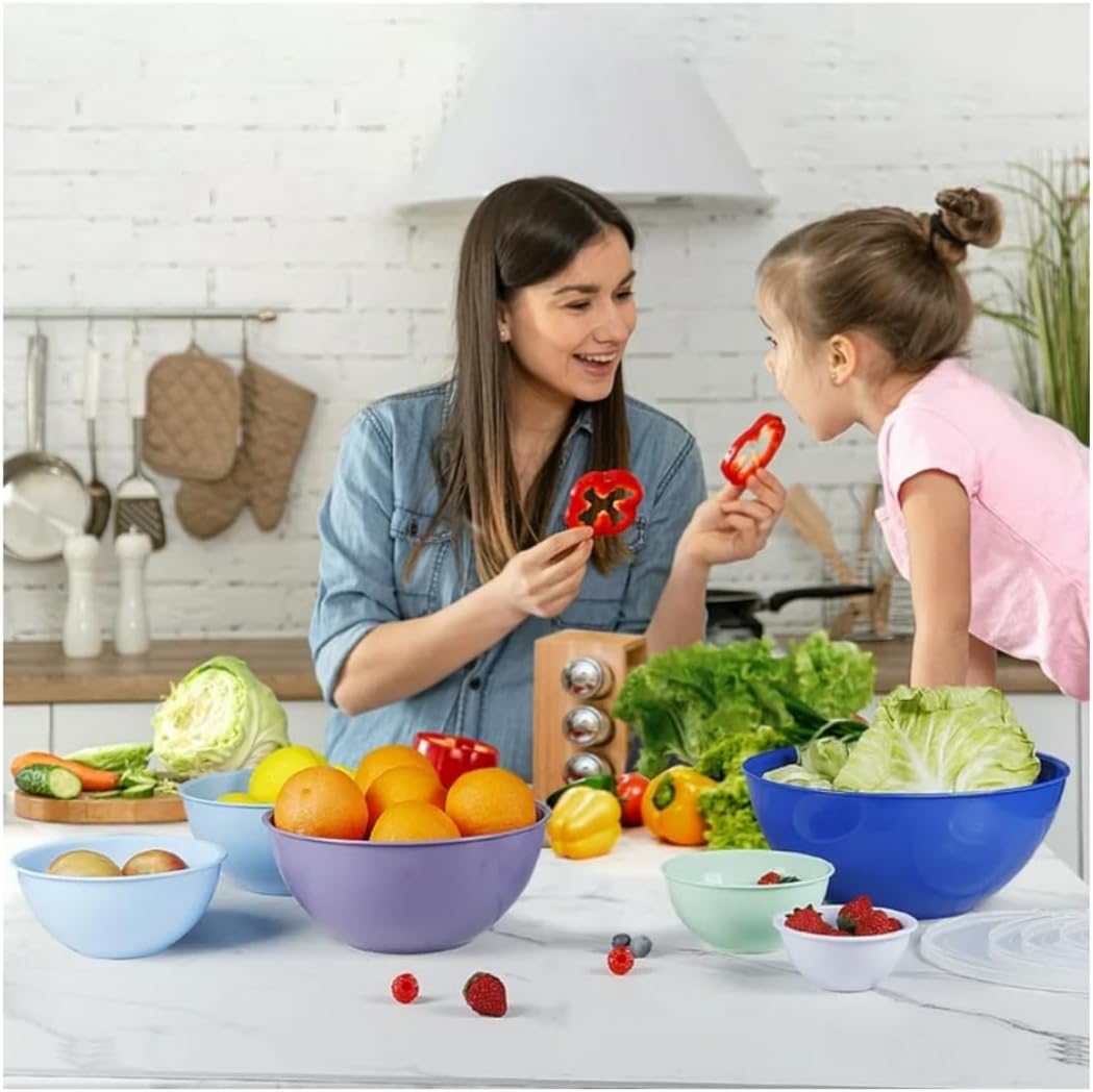 Brighten up your kitchen with this 12-piece colorful mixing bowl set, perfect for prepping, mixing, and storing. With six durable bowls and matching airtight lids, this space-saving nesting set is microwave and freezer safe, making meal prep and storage simple and stylish. Ideal for busy kitchens and home chefs alike.
