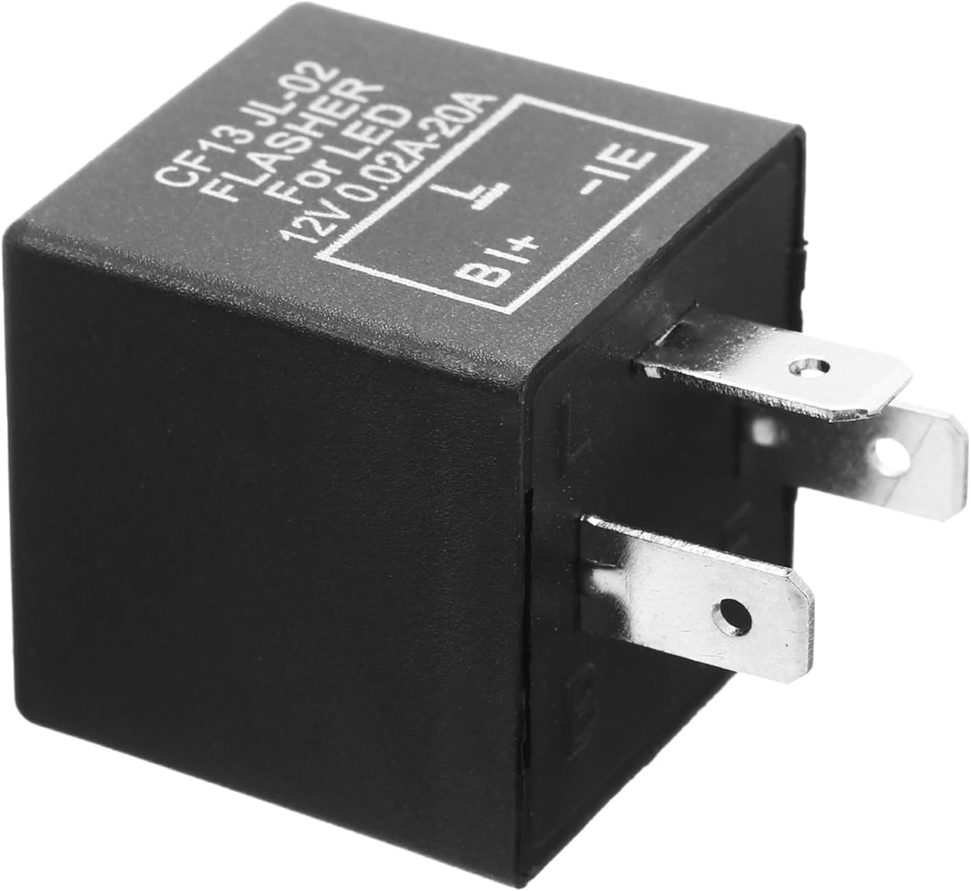 RelaysStop Signal RelaysSpecification: CF13 JL-02 3Pin Flasher Relay Suitable to solve the hyper flashing associated with fitting led indicator bulbs If your indicators flash fast, flash out of sequence or do not flash at all after fitting leds then this could be the answer Direct replacement for your existing indicator relay, just plugs it directly into your fuse box Pin: 3 12V (Operating Voltage: 11V-15V) Switch current: 0.02A-20A (max current 20A) Pins position: Positive pin (+) on the left and negative pin (-) on the right. Life time: 200 working hours Size: about 2.9x2.9x3.9cm Please make sure your relay is the same as this one before purchase, this one has 3 pins. Package included: 1x CF13 JL-02 Relay Note:-Please allow 1-10mm difference due to manual measurement.-Due to light and screen difference, the item's color may be slightly different from the pictures.