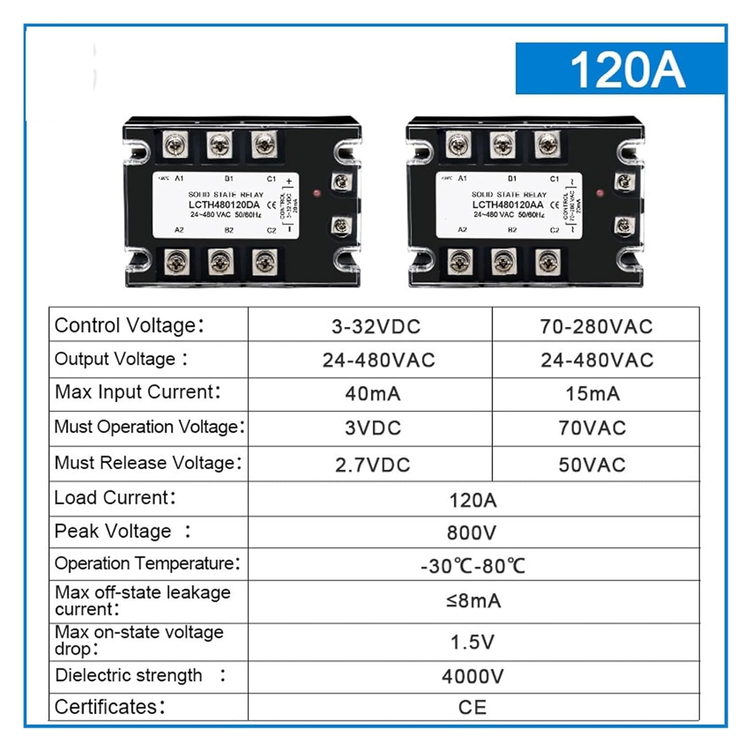 relay moduleRelays1pcs Three-phase Solid State Relay 3 Phase 10A 25A 40A 60A 80A 100A 120A 150A 200A AC Control AC DC Control AC 25DA 380VACModel Number : LCTH480Voltage : 380V