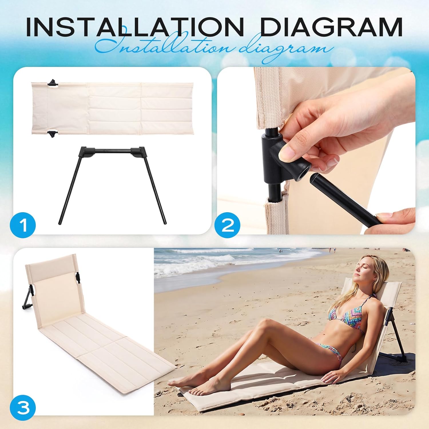 Features: Versatile: This multi-functional beach mat is suitable for parks, beaches, backyards, gardens, and other outdoor locations. Whether you want to enjoy sunbathing, reading a book, or taking a short break, this beach chair set is an excellent choice Specifications: Material: aluminum alloy Color: black and khaki Size: as shown in the figure Package includes: 2 x Foldable Beach Pool Chairs Notes: Manual measurement, please allow slight errors on size. The color may exist a slight difference due to different screen displays
