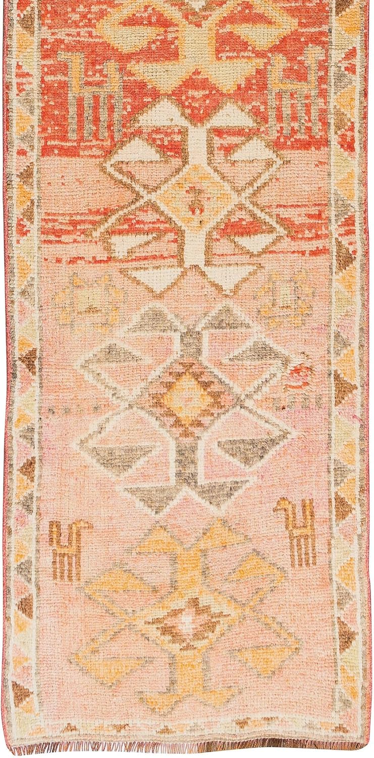 A finely hand-knotted vintage Turkish runner rug for hallway decor. The rug is made of medium wool pile on wool foundation. It is heavy and lays flat on the floor, in very good condition with no issues. It has been washed professionally, the rug is sturdy and can be used in both residential or commercial interiors.