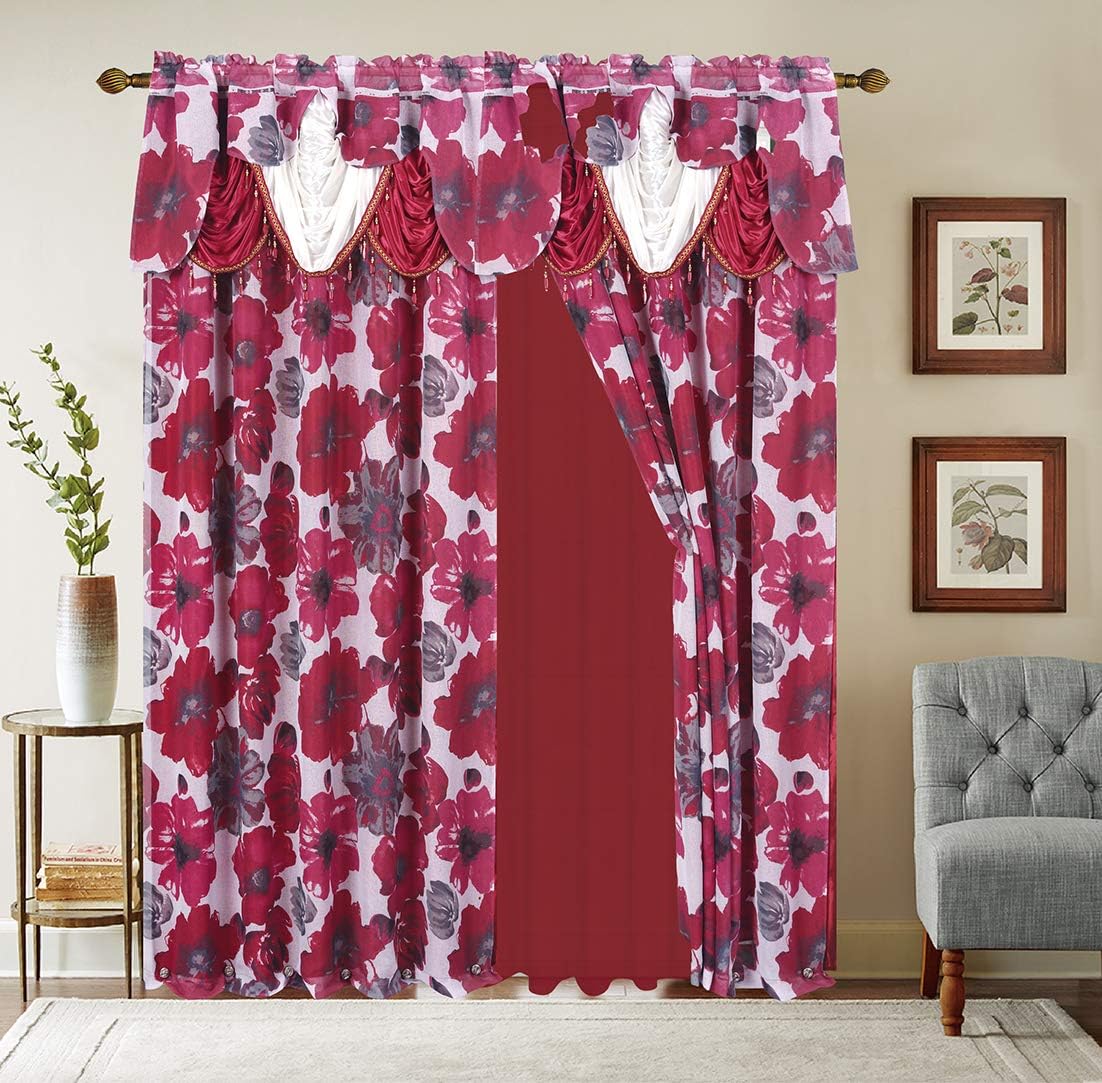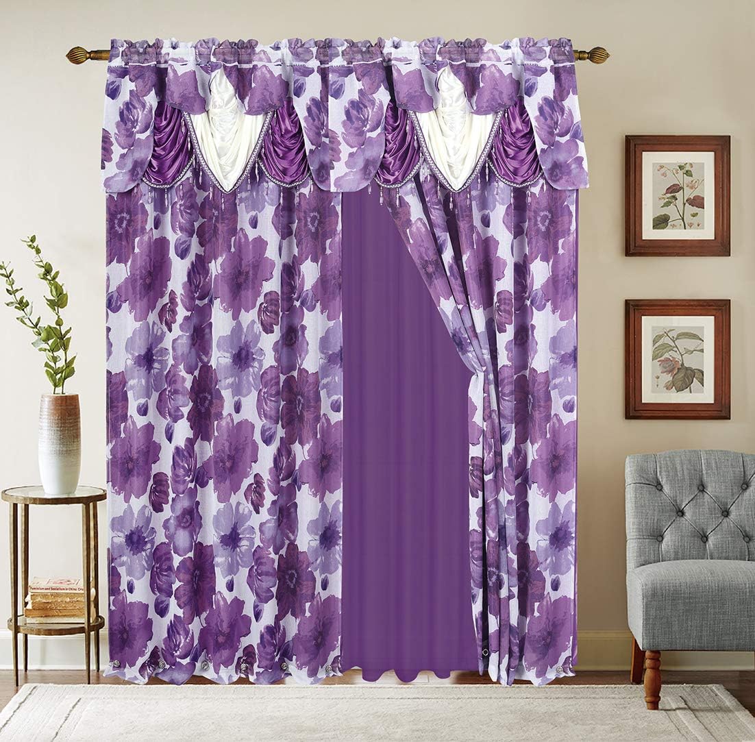 Floral panels with attached valance with beads and backing includes: 2pc curtains of 54x84" each and 2 tie back to hold the curtains Experience the luxury curtains, and beauty of one-of-a-kind these Gentle Home Curtains - A collection of window panels that deliver both fashion and function for the home. The innovative sheer weave is designed without comprising style. Whether you are looking to enhance your existing décor or going for a complete room makeover, these luxury panels are versatile enough to enhance any space. Put these window panels to work anywhere in your home. Hang them in your living room or in the nursery or kids' room to décor your room. Hang two or more window panels on a standard or decorative rod for optimal coverage. Rods sold separately. 100-percent Polyester. Machine wash, tumble dry, do not bleach.