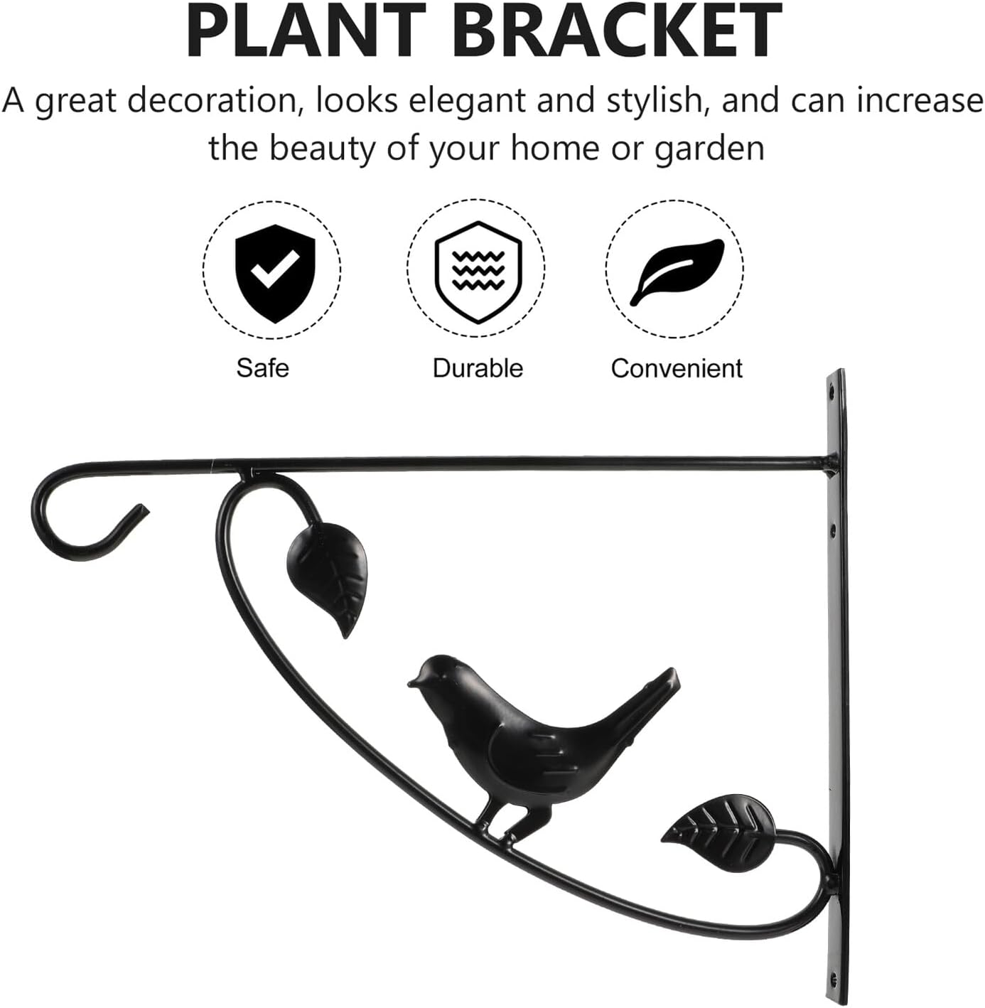Package Include 2 x Hanging Plant Brackets Features - Material: iron. -Product Info:Wall-mounted flower hook rack - Color: black. - Size: 32.00X26.00X2.50cm/12.58X10.22X0.98in. - Iron material, provides extra support and strength to ensure the safe protection for your plants and objects. - Widely application, it can be used to hanging bird feeders, flower pots, plant pots, wind chimes, , holiday decorations, etc hanging plant holder. - Whether used indoors or outdoors, it can your home and garden with no effort wall flower rack. - You can easily install it indoors, outdoors or in the garden hanging planter pot. - The paint is durable and won't rust, providing more practicality for your life flowerpot hook.Goods Informationiron stand Decoration doesn't need to be complicated.hanging planter pot Adding plants or decoration to your home's indoor or outdoor space with these hanging flower pot brackets.wall hanging plant brackets These iron hooks will decorate your garden or house more natural, charming and eye-catching