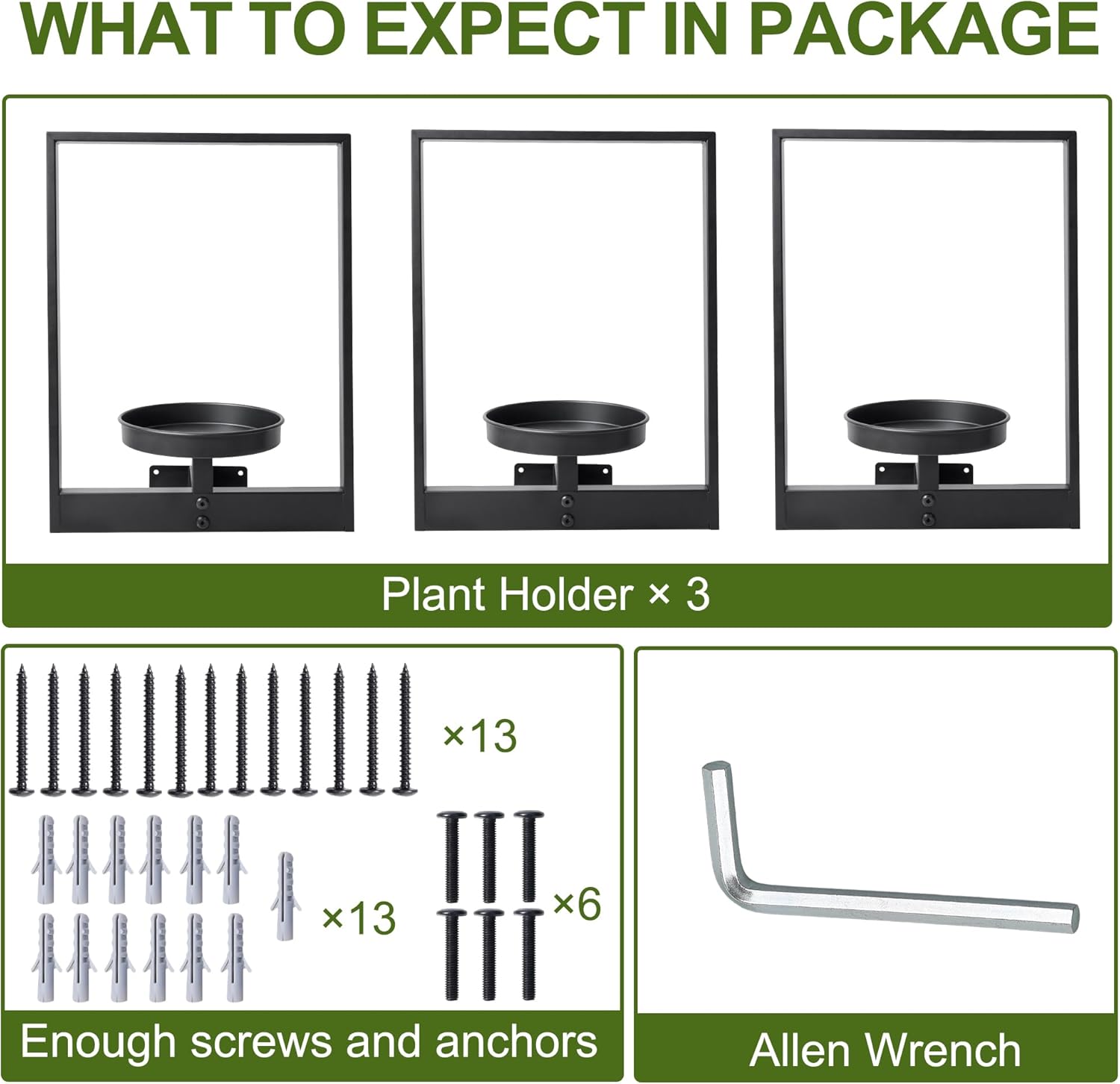 FancyPlus 3 Pack Hanging Planters for Indoor Plants,Picture Frame Wall Plant Holder Metal Modern Style Floating Plant Hanger Stand for Living Room Window Balcony Garden Patio Bedroom Entryway