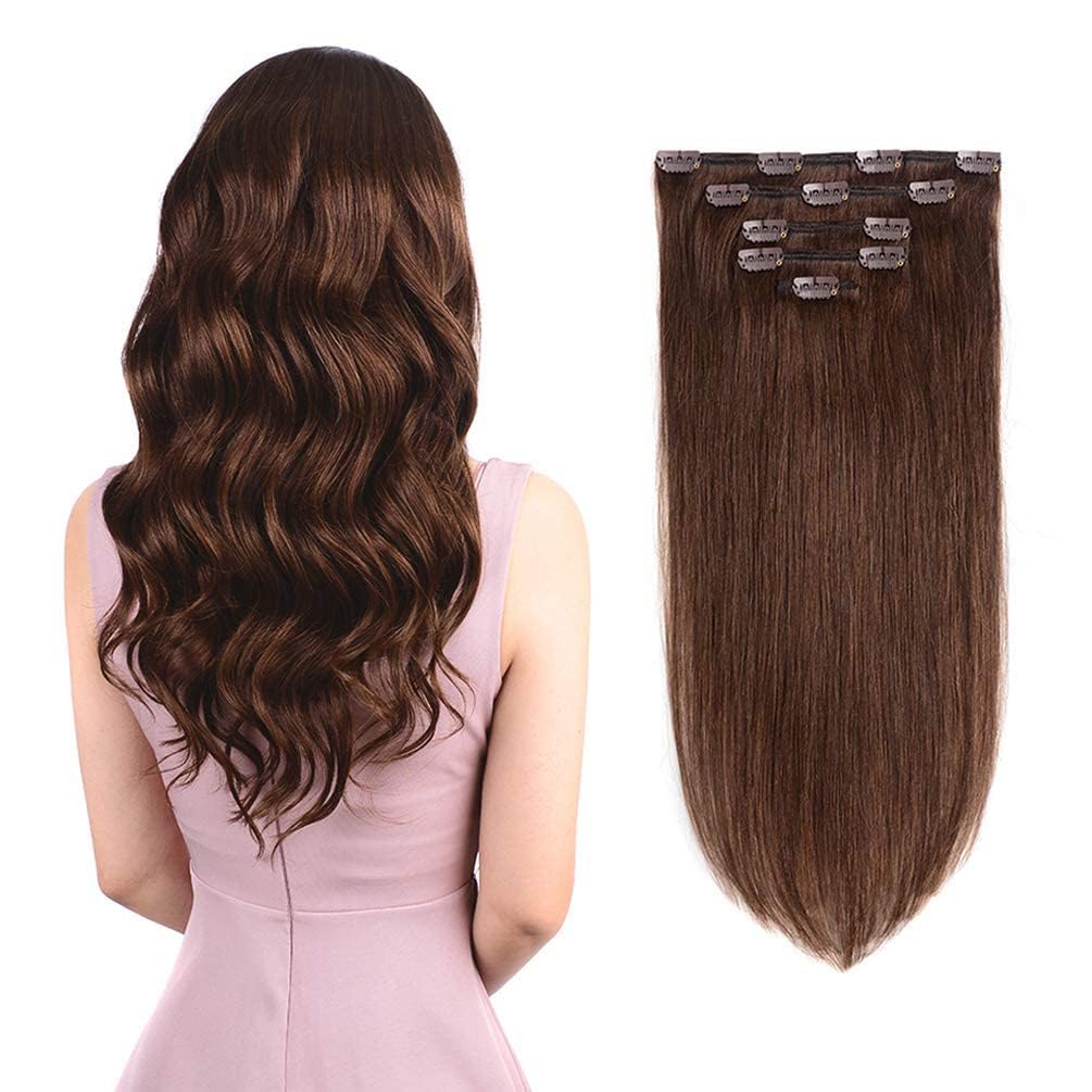 💋SWEET TIP: ⓵ Thickness of hair extension depends on weight. Just to thicker your hair, advice buy 1 - 2 sets; want to full head, advice buy 2 - 3 sets.⓶ Don't wear your extensions to swim in, this will tangle them and dry them out.⓷ Be sure to take your extensions out before going to bed, carefully clip by clip to avoid damaging your own hair.⓸ There may have color differences because of monitors and lightings sorces, To ensure color match, plz email pictures taken in outdoor natural lights to us.Product SpecificationMaterial: 100% Remy Human HairNet Weight: approx. 70 GHair Length: approx. 14inchHair Color: Natural Black to Chestnut Brown Highlight Black OmbreHair Style: clip in hair extensionsHair Extension Type: StraightHair Extensions Usage: Can be trimmed, curled, straightened, washed & dyed.Package Included Real human hair extensions 5pcs set that consists:☆ One (1) 8 inch wide weft with 4 clips☆ One (1) 6 inch wide weft with 3 clips☆ Two (2) 4 inch wide weft with 2 clips☆ One (1) 2 inch wide weft with 1 clipSuggestion: Let wider pieces clip in at the back of your hair and narrow pieces clip in at the side to frame your face. And you can trim it to suit your hairstyle.Amygirl Service❤Email us and we will be happy to help you. Send us photos of your hair with a description & we will write back to you with the best color suggestion.❤We are always here to guarantee you have a satisfied shopping experience. If you are not satisfied with our human hair clip in extensions, please contact us before you leave you review. We will solve your problem immediately.❤We are very excited to hear from you!