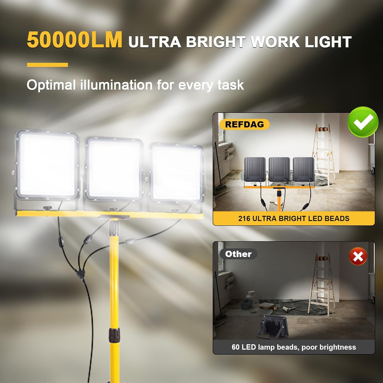 | Included Components | 3 Led Work Light Heads, Adjustable Tripod Stand, 16 Foot Power Cord, Individual Switches, User Manual |