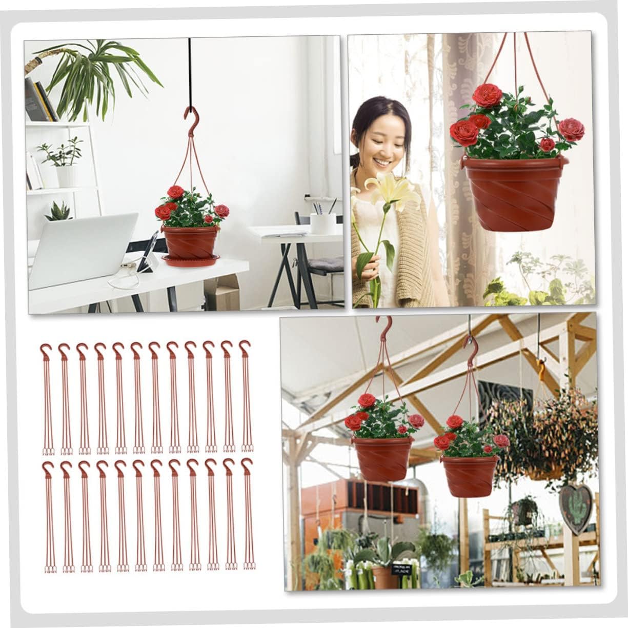 Package Include 60 x planter hooks Features - Widely use of occasions, such as: home, office, garden and so on Flowerpot Hangers. - Material: Plastic Flower Support Tools - The plant hooks are simple in structure and can be easy to use Plastic Plant Hook. - The plant hooks offer you an elegant display your flowers and plant Planter Hooks. - The hangers for plants can be used well with the hanging basket or single for the plant pot Hooks for Garden. - It is made of plastic material with workmanship for durability Pot Hooks.Goods InformationPots Hanging Hooks Fit for flower pot, flower basket.Flower Support Tools They are and .Plastic Planter Hangers They are easy to use, with workmanship.Hanging Planter Hooks The products are some flowerpot hooks, made of plastic materials, and can be used for a long time