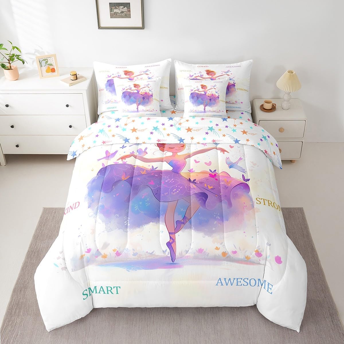 Welcome to our store. Size information: Twin size: 1 Comforter 68"W x 90"L and 1 Fitted Sheet 39"W x 75"L x 16"H and 1 Flat Sheet 67"W x 96"L and 2 Pillowcases 20" x 30" and 2 Throw Pillow Covers 18" x 18" . Full size: 1 Comforter 79"W x 90"L and 1 Fitted Sheet 55"W x 75"L x 16"H and 1 Flat Sheet 81"W x 96"L and 2 Pillowcases 20" x 30" and 2 Throw Pillow Covers 18" x 18" . Queen size: 1 Comforter 90"W x 90"L and 1 Fitted Sheet 60"W x 80"L x 16"H and 1 Flat Sheet 90"W x 102"L and 2 Pillowcases 20" x 30" and 2 Throw Pillow Covers 18" x 18" . King size: 1 Comforter 104"W x 90"L and 1 Fitted Sheet 78"W x 80"L x 16"H and 1 Flat Sheet 90"W x 106"L and 2 Pillowcases 20" x 36" and 2 Throw Pillow Covers 18" x 18" . Useful and practical: A luxurious product for homes,dorm rooms,hotels,guest rooms.Practical to use for being polyester, feels like cotton which is super soft and breathable.No chemicals used, no dye substance harming the health of you or your family. Unique design: Vivid Colors won't fade thanks to new 3d digital printing methods. These unique designs match well with various color palettes of your rugs, curtains, headboard, furniture, and all other decor accessories. Washing instructions: Machine wash it in cold water without bleach,and tumble dry on low heat to restore its freshness and appearance.