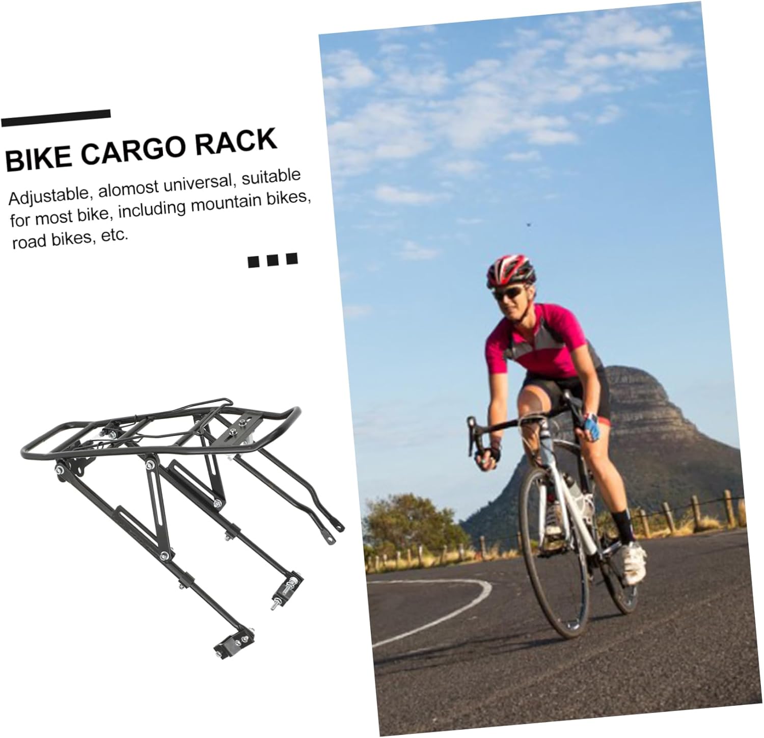 Package List 1 x Bike cargo rack Characteristics - Color: Black cargo rack. - Size: About 38.5x14.5x1 cm cycling rack. - Material: Aluminum alloy. - Easy installation and removal rack rear. - Well made of and sturdy aluminum alloy, heavy-duty, durable for long hours luggage rack. - for use with panniers, backpacks, , etc bike cargo rack. - Adjustable, alomost universal, suitable for most bike, including mountain bikes, road bikes, etc rack.Goods Descriptionrack rear It is suitable for most bikes and for use with panniers, backpacks, , etc.luggage rack Are you looking a rear cycling rack? This cargo rack might be a choice for you! Made of alloy, it is heavy-duty and durable for long-lasting use.cargo rack A and helpful companion for cycling!
