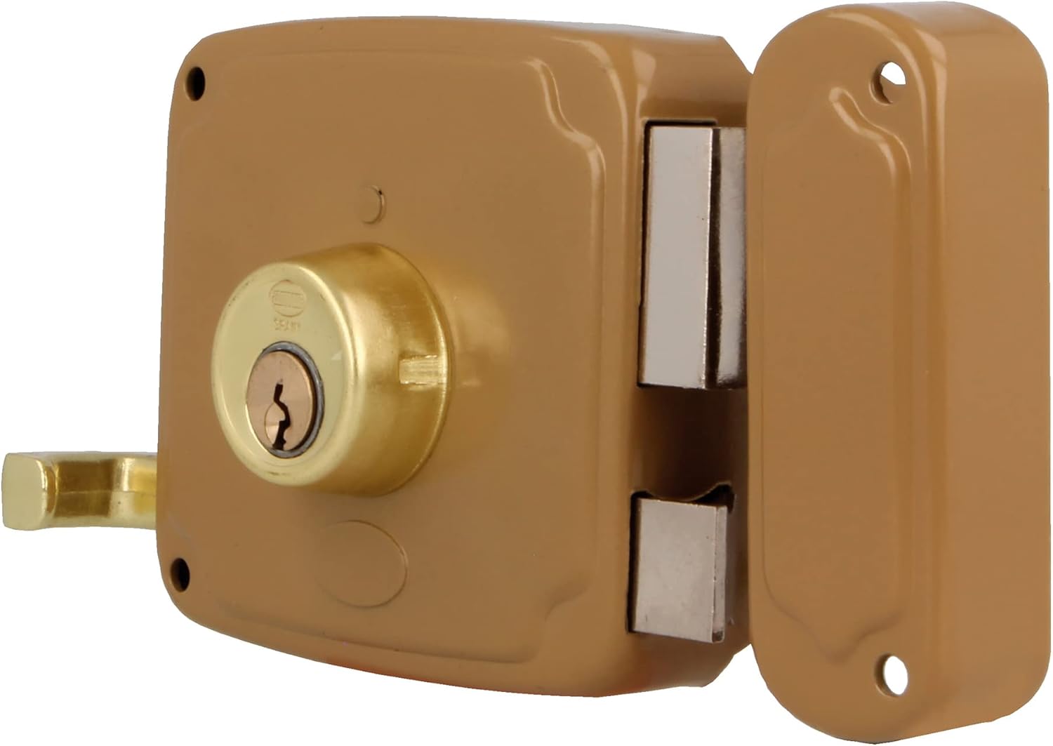 Amig Interior Door Lock is the perfect choice for adding elegance and sophistication to your home. Crafted from gold-tone steel, this right-hand overlay lock features a gold pin that gives it a touch of distinction. Ideal for entrance or passage wood doors, includes 3 serret keys and screws needed for installation. Resistant to rubbing, rust and corrosion, this lock ensures a long service life. Measuring 85 x 95 mm and a 50 mm cylinder, it ensures a precise fit. Perfect for strengthening security at the entrance of the home, as well as for bedroom doors, offices, gates or fences. Look no further, this lock is the ideal choice for any room!