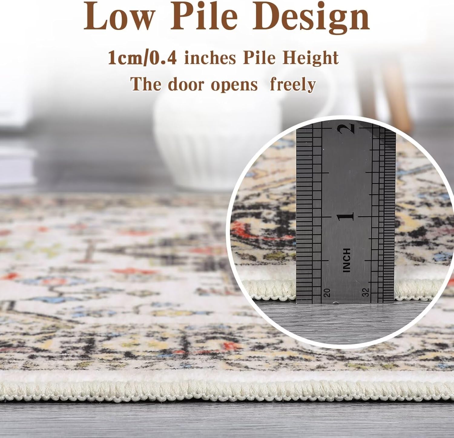 Looking to refresh your space with a touch of vintage style and unmatched comfort? Wondering how a soft, non-slip, and easy-to-clean rug could transform your living room or bedroom? What if your family and pets could enjoy a soft, safe, and retro floor every day? Discover how this medallion washable rug can be the perfect finishing touch for any room in your home.Highlights at a Glance:Oriental medallion washable rugUltra-soft faux wool comfortReliable non-slip backingMachine washableSpecification:Material: 100% PolyesterSize: 2x6 ft / 5x7 ft / 8x10 ft / 9x12 ft / 10x13 ftApplication: Living Room/Bedroom/Dining Room/Nursery/Kids Room/Playroom/Kitchen/Farmhouse/Home Office/Entryway/Hallway/Dorm/LaundryPacking List: 1 x Vintage Area RugFriendly Note:When area rug arrives, there may be temporary creases, you can roll the washable rug in the opposite direction and lay it flat on the floor while applying pressure to the carpet, the creases will disappear completely in a few days.Measure your space and choose the appropriate size. Ensure that the carpet can cover the area you want and coordinate with the surrounding furniture.The color may vary due to different lightning conditions and screens, please kindly notice that.