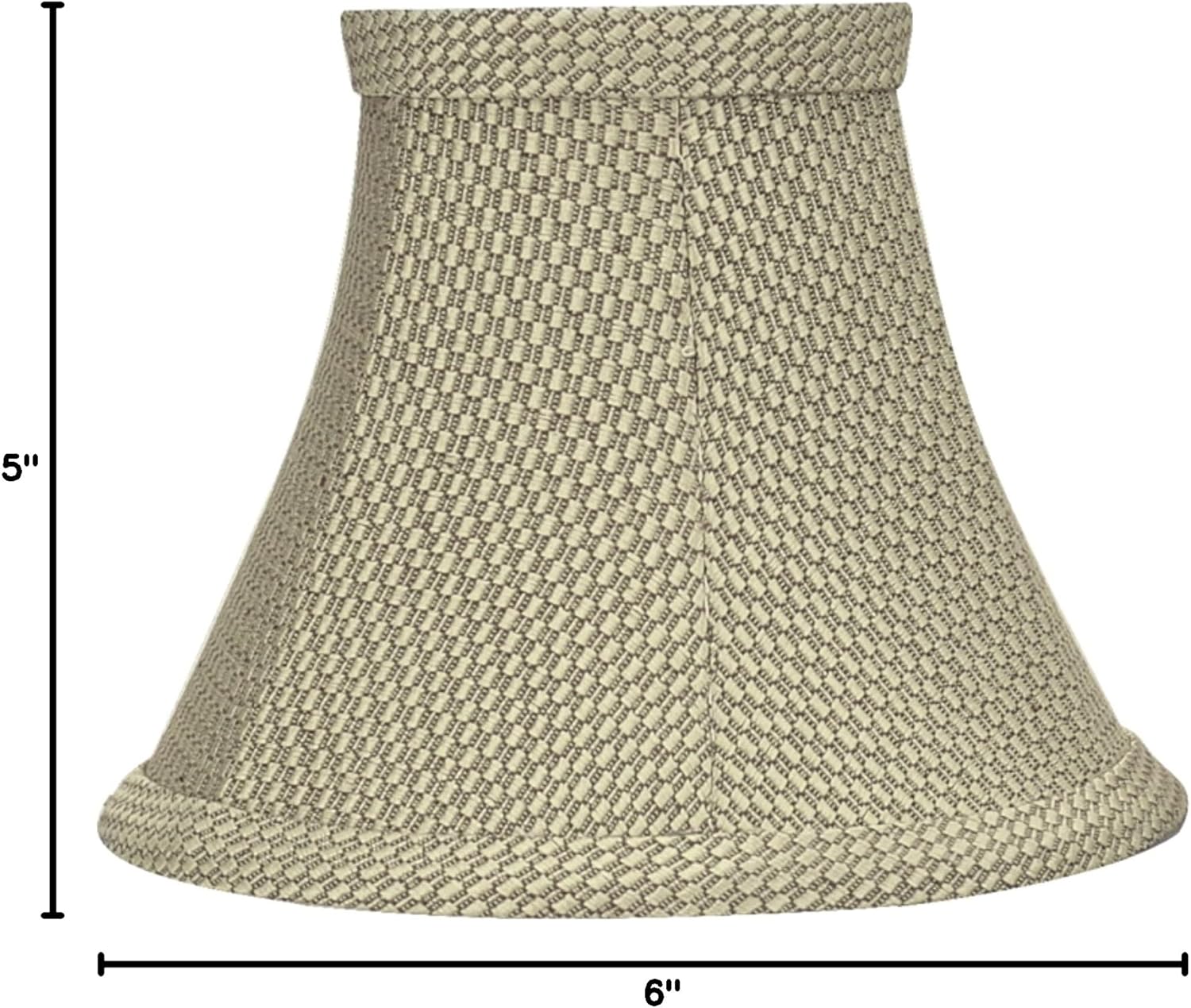 Aspen Creative Item #30061-5A Aspen Creative offers a 5-pack bell shaped clip-on lamp shade in light beige that will enhance any space. Shade Dimensions: 3" Top x 6" Bottom x 5" Height The shade is made with a clip-on styled fitter that is most compatible with torpedo chandelier light bulbs but can also be used with other bulbs that are similar in size. Clip-on style fitter designed for bare bulb chandeliers and wall sconces that use candelabra bulbs with an E12 base and 40 watt max, bent tip style bulbs not recommended (bulbs not included).Crafted with precision and attention to detail, our lamp shades are made with high-quality materials that are built to last. They are made to withstand daily use while still maintaining their shape and beauty. This product is suitable for a wide range of lighting options including small table lamps, accent lamps, candle stick lamps, chandeliers, and wall sconces, and bedroom night light lamps.