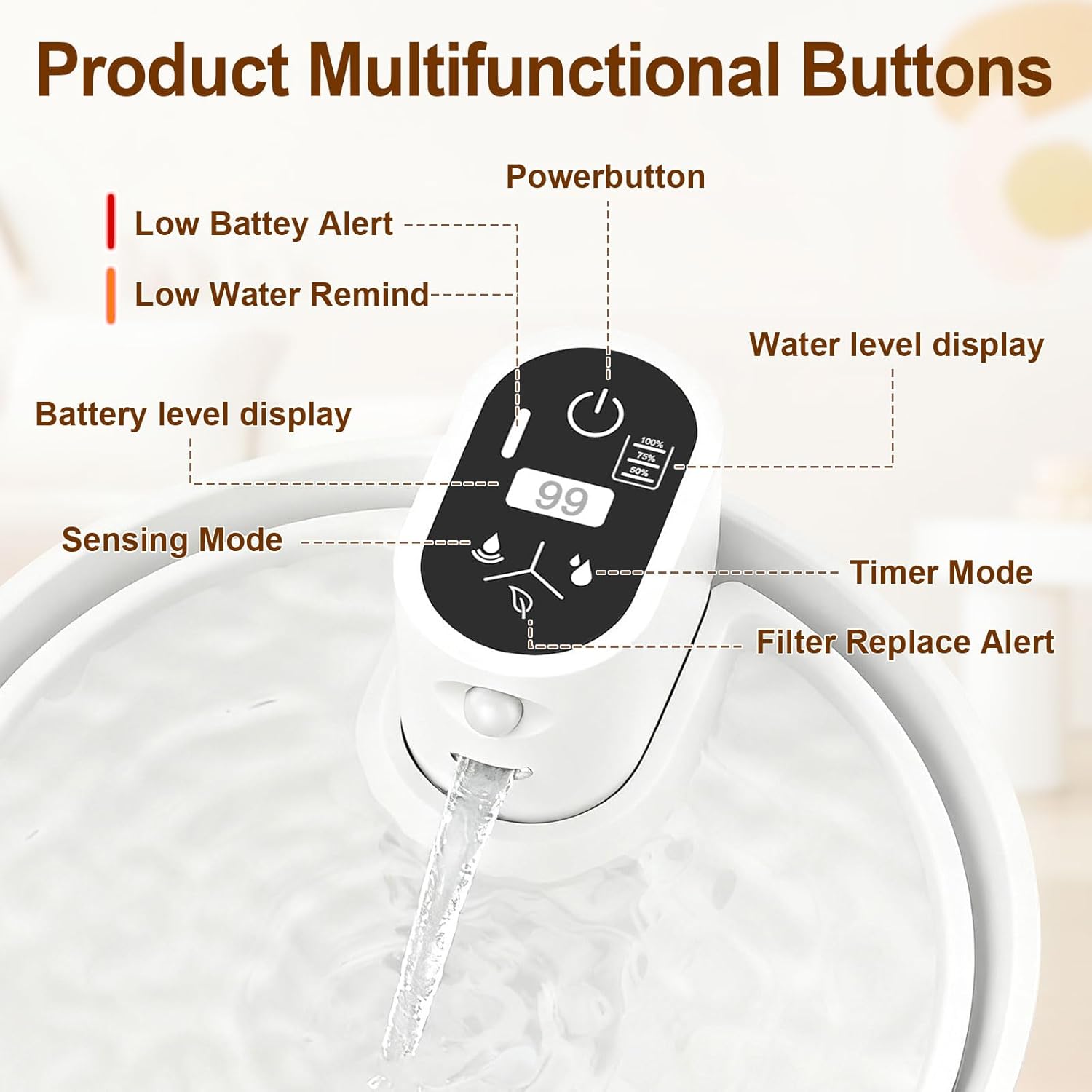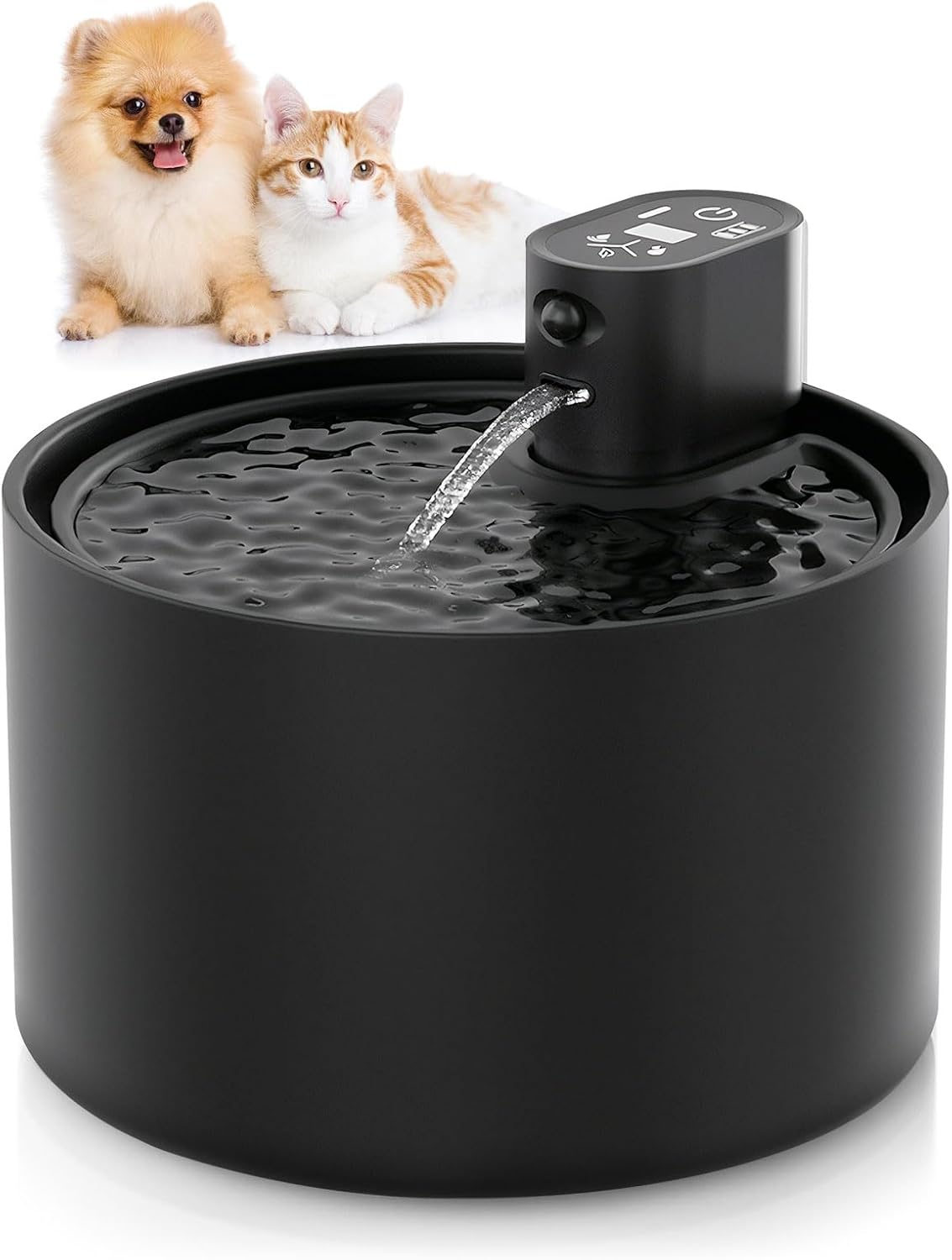 Product Description: Introducing the Automatic Ceramic Cat Water Fountain, the ultimate solution for keeping your pets hydrated with freshness and convenience! Designed with pet health in mind, this innovative fountain combines ceramic properties with smart technology to deliver a superior drinking experience. Key Features: Ceramic Material: Keeps water fresh, ensuring your pets enjoy clean water every day. Smart Motion Sensor: Detects your pet’s presence and automatically releases water, encouraging regular hydration. Large 2.3L Capacity: Ideal for multi-pet homes or extended use, reducing the need for frequent refills. Real-Time Display: Monitor water temperature and level instantly via the built-in LED screen. Cordless & Rechargeable: The 5000mAh battery supports days of uninterrupted use, and the USB charging option offers flexibility. Ultra-Quiet Pump: Operates at below 30dB, ensuring no disturbance to your household. Easy to Clean: The detachable design and dishwasher-safe components make maintenance simple. Specifications: Product Dimensions:20cm x 16.5cm Net Weight: 2.328kg Material: Ceramic Battery Capacity: 5000mAh Water Capacity: 78oz/2.3L capacity Scope of supply: 1*Automatic Ceramic Cat Water Fountain 1*User Manual 1*Related accessories Perfect for cats and small dogs, this water fountain promotes healthy hydration habits while adding a touch of elegance to your home. Upgrade your pet’s lifestyle with the smart, efficient, and stylish Ceramic Cat Water Fountain!
