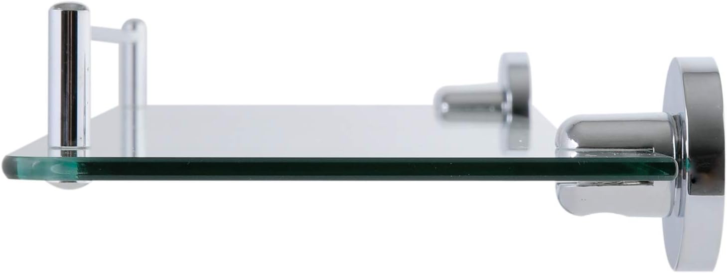 Product Description axentia bathroom glass rectangular shelf - Decorative wall-mounted chromed shelf with transparent glass fits seamlessly into any interior and manages to perfectly combine aesthetic moment and functionality. Under the mirror or above the sink, this beautiful and practical bathroom glass shelf with a smooth and easy to maintain surface is an ideal place for your bathroom accessories, cosmetics, toiletries. The shower caddy with approx. 5 mm thick glass and chromed rail and brackets gives a high-quality look. A well-designed floating wall shelf made of transparent glass is a perfect solution for saving space, visually attractive and easy to mount. The functionality and design of this rectangular bathroom shelf are in perfect harmony. Main advantages: ✔ modern look, elegant design ✔ chromed rail stops items falling off the shelf ✔ 5 mm tempered glass ✔ adjustable - easy to place according to your own needs ✔ the shelf comes with fittings ✔ safe and easy to install Technical data: ✔ Dimensions: approx. 50 x 14 x 5.7 cm ✔ Glass dimensions: approx. 21 cm ✔ Material: chrome, tempered glass ✔ Load capacity: max. ? axentia – living culture The axentia brand offers a wide variety of products for your daily use. From general household, to bathroom and textiles, the quality and style are guaranteed to fit right in and add a touch of class and sophistication to your everyday routine. Add character to your general household accessories today! Set Contains: 1 x axentia bathroom glass shelf, screws and sockets included in the delivery