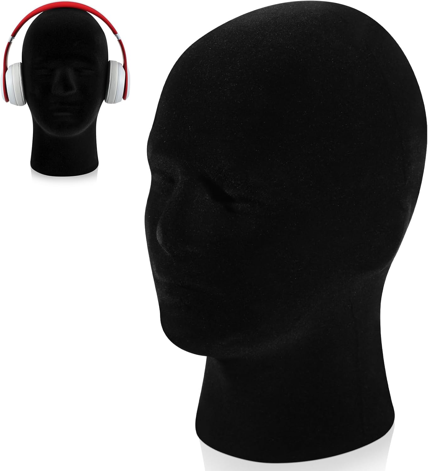 Features: Thoughtful present: Surprise your loved ones with a practical and stylish male mannequin head gift that they can use to display hats, jewelry, headphones, and more. It's a thoughtful gesture that combines functionality and aesthetics. Enhances interior decor: The sleek black color of the wig head mannequin adds a touch of charm and elegance to your space. It complements different interior styles, making it a good addition to bedrooms, dressing rooms, or retail settings. Specifications: Material: velvet foam Color: black Size: head circumference about 21.3 inches/ 54 cm, height about 10.8 inches/ 27.5 cm, bottom diameter about 5.5 inches/ 14 cm, and hole at the bottom about 1 inch/ 2.5 cm in diameter Package includes: 4 x Mannequin head for wigs Notes: Manual measurement, please allow slight errors on size. The color may exist a slight difference due to different screen displays.