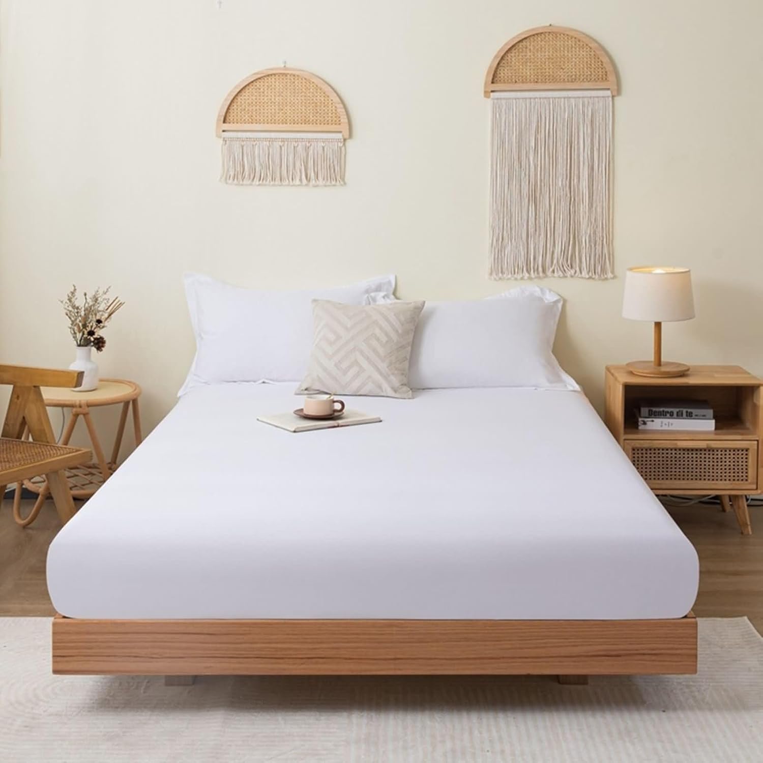 1.PACKAGE: Bed Sheet x 1 and Pillowcase x 2FABRIC: CottonOur fitted sheet with pockets to easily fit 15-30cm mattresses, so it’s a cinch to put on the bed – even with a mattress topper! Also, our fitted sheets feature elastic all the way around its edges to hug your mattress securely!Our bed sheets are soft, breathability and lasting quality.Our bed sheets are conveniently machine washable. However, to keep wrinkles at bay, promptly remove the sheets from the dryer or iron them.