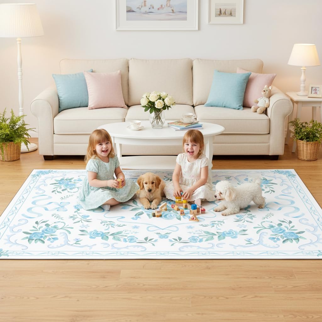 Stylish design and high comfort: This washable carpet pattern is digitally printed in 3D, and different sizes are suitable for many scenarios such as living room and bedroom. The variety of patterns can be matched with vintage, modern abstract and other interior decorating styles. Size Information: This rug is available in 6 square rug sizes: 60x91cm/2x3feet, 91x152cm/3x5feet,121x182cm/4x6feet,152x213cm/5x7feet,152x243cm/5x8feet,. 182x274cm/6x9feet Non-shedding & Anti-slip: Thickened washed backing enhances the friction of the living room carpet, making it non-slip and grippy. Imported high-density short pile is easier to clean and comfortable to the feet, and will not feel hot in summer. The backing material is gentle to wood floors and protects them. Remarks: 1.Due to monitor settings and pixel definition, the color of the actual item is slightly different from the picture. 2. Due to packaging and transportation, the product will have slight wrinkles, which will not affect normal use.