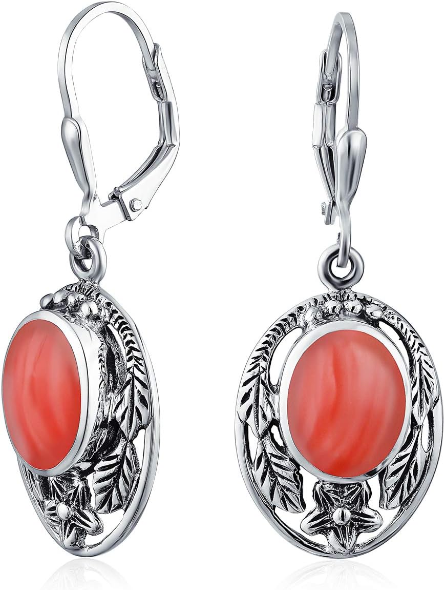 Add tropical charm to your wardrobe with our Simulated Coral Flower Earrings. These vibrant, Deco-designed earrings are perfect for warm weather. Crafted from sterling silver, they feature a delightful cutout pattern of leaves and flowers. The centerpiece is a stunning oval-shaped Simulated Coral in salmon pink. Lightweight and easy to style, they pair well with sundresses or shorts. Ideal for summer birthdays and Mother's Day gifts. Embrace the beauty of pink and add these earrings to your collection for sunny days.