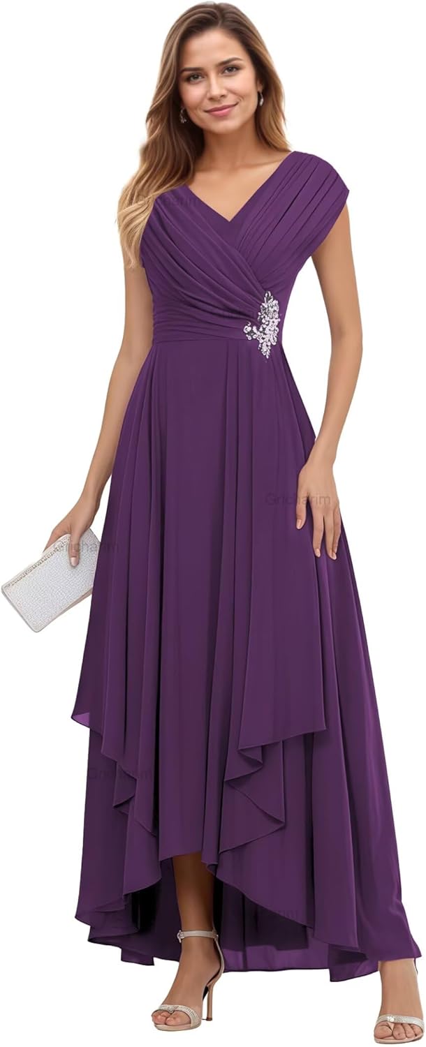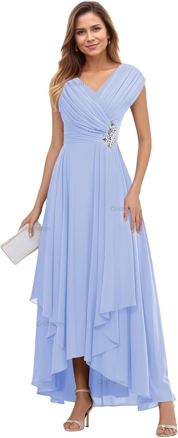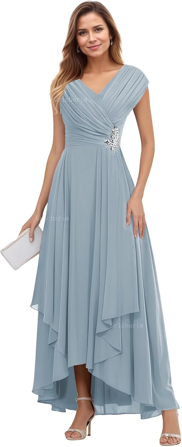 Welcome to Gricharim! We have over 10 years of making prom dress,bridesmaid dresses,wedding dress,formal gowns,evening dresses and other special occasion dress, just buy with confidence and we will be pleased to serve you. Description: Fabric:High Quality Chiffon Features:Cap sleeve ruched mother of the bride dresses, v neck elegant modest wedding guest dress. Features with unique Cap sleeve, Lace Applique, Ruffle chiffon,gorgeous enough to wear in any occasion Dresses Length:Floor Length Back Design:Lace Up Back How to choose size: Measure your body and compare it with our size chart. If you want a more accurate fit, please send us your measurements as follows: 1. Bust:____inch 2. Waist:____inch 3. Hips:____inch 4. Shoulder to floor(with shoes):____ inch 5. Shoulder width:____inch 6. The date you need the dress:____ How to contact us: 1. Amazon email: choose any dress of a color and size and find "ask a question" button to contact us. 2. We provide customers with 24 - hour online consultation service. If you need any help, please search for‘Gricharim contact info’ in the search bar of ‘Have a question? ’for help. We would do our best to help you out and meet your need.