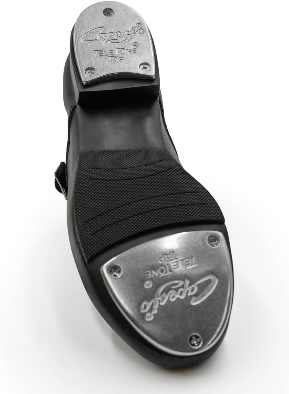 Take your first steps with assurance in the Mary Jane Tap Shoe. Comes in shiny, black patent leather, black PU leather or caramel PU leather. Features non-slip heel counter, soft cotton lining and foam insole for shock absorption. High quality Capezio® Tele Tone® toe and heel taps create a deeper resonating sound. Buckle closure eliminates the worry of your shoe slipping off during warm-ups. Highly recommended for introductory tappers. Salvatore Capezio was born in 1871 in Muro Lucano, Italy. Uninterested in following in his father's footsteps as a construction engineer, he became an artist of his own right, a cobbler. In 1887, at the age of 17, he opened his shop on Broadway and 39th Street, diagonally across from the old Metropolitan Opera House in New York City. Soon, the shop became a meeting place for dancers who would stop by to discuss their needs and to get a pair of his shoes. As Capezio's popularity grew, dancers from around the world made it a point to visit him and purchase his shoes. The innovation of the products that Salvatore Capezio created and the camaraderie he shared with the dancers molded the direction that his company would follow. In this image, the Capezio brand was established to promote and recognize ongoing achievements and participation in dance. Capezio products remain in the forefront in quality and in technological advances with innovations like the split-sole, the stretch-insert, the Dansneaker and the Tapsneaker. Capezio believes that their success is dependent upon the individual commitment of each customer to continually set new standards of creativity and performance, while preserving a reputation for dependability and distinction. Capezio pledges their support and dedication to the advancement of dance, theater and recreation in communities worldwide.