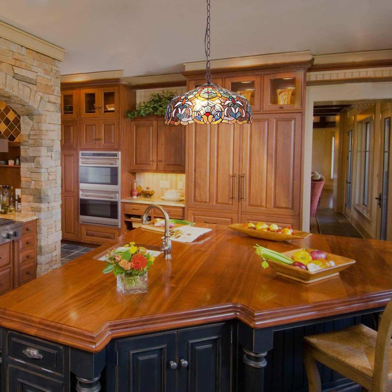 Capulina tiffany pendant lights is one of the best ways make your island kitchen create a pretty effect and more stylish. Tiffany Hanging Light's shades and colors impact ones moods. Orange pendant lights has been related to becoming brilliant as well as cheerful; green since pure and also tranquil; purple or pink along with magnificence along with wealth; Abstract art is all about geometric shapes and design. Contemporary stained glass takes this classic form of art and design, allowing it to work with today’s architecture. With contemporary stained glass designs, you can have the best of a classic art form with a futuristic feel, it’s multi-functional for art and lighting. What are the basic styles of tiffany kitchen counter lighting? Three categories: round, lantern, and string. Round pendant lights: These Stained Glass Pendant Light Fixtures circular lights are often the style which springs to mind the most when you think about hanging tiffany style lamp over a kitchen island. Tiffany Style Kitchen Lighting Collections are either spherical or spherical but flattened at the ends, creating a somewhat oval design. Available in a wide range of colors, these Large Tiffany Style Chandeliers are suitable for kitchens which have a lot of square, linear and defined items in the kitchen already. What types of glass are used in stained glass? Color glass provides the color and texture that is seen in every detail of the work. How to clean tiffany glass chandelier? Care must be taken when cleaning stained glass. Minimal dusting is recommended. If the piece requires further care, use distilled water in a spray bottle to loosen any dirt and wipe with a lint free towel. Keep away from areas where grease can build up on the stained glass for best results.