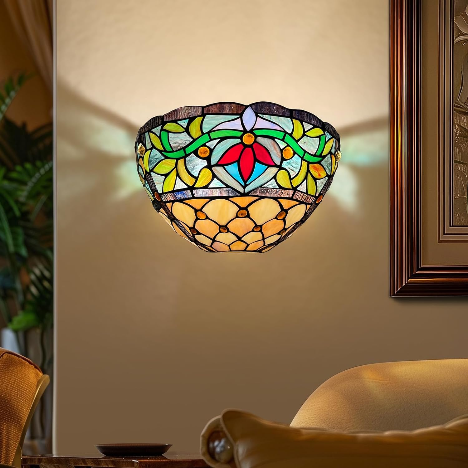 Capulina Dragonfly Style Handcrafted stained glass wall light lampshade is slight heavy than you expected, because it is made of real stained glass, not a plastic shade. But when you knock it, it sounds like plastic. Because of its special manufacturing process. Each glass piece is cut by hand then polish the edge before wrapping the copper foil. The edges of the glass pieces are wrapped with adhesive copper tape (copper foil). Then putted together in a mould according to the pattern. At last, using soldering material to weld each glass at a very high temperature. If you are familiar with tiffany stained glass shade and stained glass panel, you will know there is air between each piece glass. So it sounds like plastic when you knock it. That's tiffany stained glasses' feature. The Stained glass is Much Heavy than Plastic, and couldn't been burned, normal knife couldn't cut them. It is easy to check.