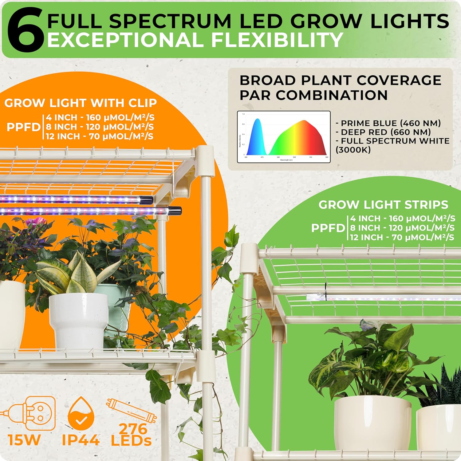Carpathen Indoor Greenhouse 2 Dimmable 15W Full Spectrum LED Lights Strip and 2 Gooseneck Plant Lamp Clip-on - Mini Greenhouse with Zip PVC Cover