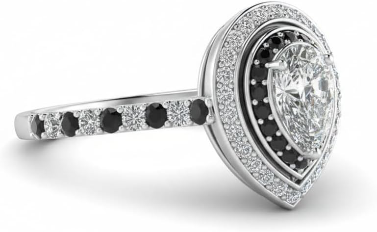 The Petite Diamond Ring With Double Halo portrays impeccable sparkle with the stunning pear shaped diamond accented in the center enclosed with a marvelous double halo pattern encrusted with small glistening round shaped stones aligned in a classic pave setting. The delicate ring shank is emblazoned with tiny twinkling diamonds offering you an enthralling appeal. rings engagement for women,pave Setting engagement rings ct,sterling silver wedding rings for women ,wedding rings, rings, sterling silver engagement, pave Setting engagement ring ,Pear wedding rings for women, Pear rings, band for women,Pear ring ,sterling silver rings for women ,wedding sterling silver women,engagement rings women , rings,ring with Pear, Pear band,eternity ring for women sterling silver,crystal pave Setting wedding ring,sterling silver infinity band ring,sterling silver,stone ring, pave Setting ring bands for women,women ,right hand rings for women,wedding band sets for women, rings wedding sets, sterling silver rings wide band, bands for women, ring bands,sterling silver knuckle ring, stacking engagement ring set, wedding ring set,womens sterling silver women, Pear engagement rings for women