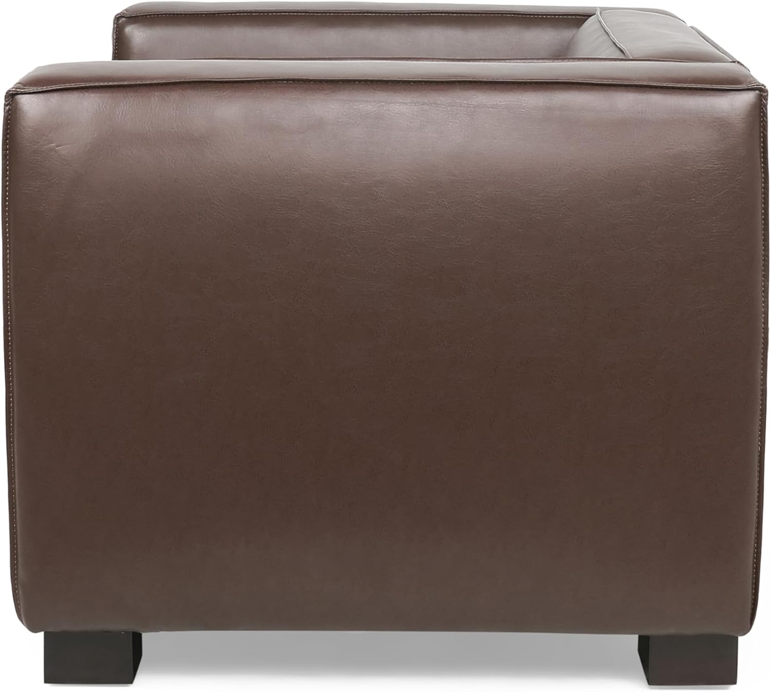 Create a cozy spot in your home where you can kick back and relax. Featuring a refined tuxedo design, gorgeous faux leather upholstery, and bold block birch wood legs, our club chair offers your decor a stunning upgrade that will surely have all your guests talking. Whether you are looking for a place to settle down with a good book or need a place to curl up and relax, this chair brings you the best in comfort and design for you to enjoy.Material: Faux LeatherLeg Material: Birch WoodMultiple Color OptionsLeg Finish: Dark WalnutAssembly RequiredDimensions: 31.25 inches deep x 39.00 inches wide x 26.00 inches highSeat Dimensions: 22.75 inches deep x 23.00 inches wide x 15.75 inches highWeight Capacity: 300 lbs