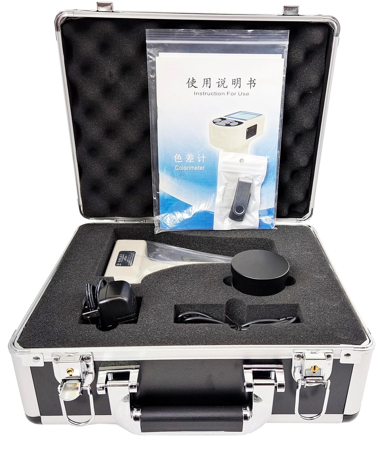 Introduction: The DR-350 is design and developed according to international CIE1931, 1976 and other relevant standards at home and abroad, it is a new economic and practical general colorimeter, we introduce the latest imported LED light source and sensor from other countries, and it has stable, durable, the characteristics of the economy. The interface we design the menu type, because it is simple and easy to understand. Our DR-350 is not only widely used on Quality department to test the color difference, but also used on the school teaching, scientific research, and color design. Main functions of the software: ◇ The color difference data analysis about the standard and sample ◇ Color simulation, color difference chart, Batch ◇ Analysis of the color difference histogram ◇ Save and callout the data from data base ◇ Save and callout the data from data base ◇ Print the color quality chart ◇ Download the instrument’s data to the computer Specification Lighting/light system::45/0 Measuringaperture::Ø8mm Operating language::Simplified Chinese, Traditional Chinese, English Display model::L*a*b*、L*C*H*、XYZ、∆E*ab、∆(L*a*b*)、∆(L*C*H*)、∆XYZ Storage space::Standard: 50 sets, 30 sets color difference data under a standard data Standard illuminant::D65、D50、F11、 C、 Repeatability::Standard calibration: within△E*ab≤0.08 :(When the white calibration plates measured 30 times, and then averaged) Measurement spacing::About 2 seconds Calibration::White calibration, Zero cablibration Power source::4 AA-size batteries or AC adapter Operating temperature::0- 40℃, (32 -104℉); Relative humidity 85% or less Size(WxHxD)::110 ×60 ×190mm Weight::330g(Without batteries) Standard Accessories::Bag, Protection cap, Software, AC adapter, USB cable, Instrument, Hard case, Calibration plateOptional accessory::Micro-printer