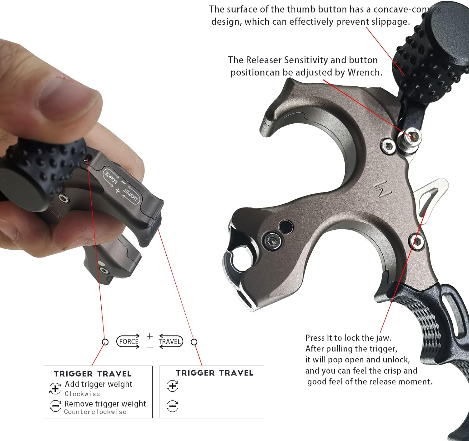 Our Bow Aid Releaser is designed for accurate and consistent releases,perfect for archery enthusiasts seeking precision in their shots.Packaged with instructions, tools and lanyard.The archery release aid is built to last,providing reliable and long-lasting use for both left and right-handers.Enhanced Stability.The included wrist straps offer improved stability and control during release,reducing the risk of torque and helping archers maintain a steady aim.Great choice for anyone who wants to improve their archery skills and enjoy their shooting experience. Before purchasing, be sure to check your bow's draw weight to ensure compatibility. Whether you're a novice or experienced archer.