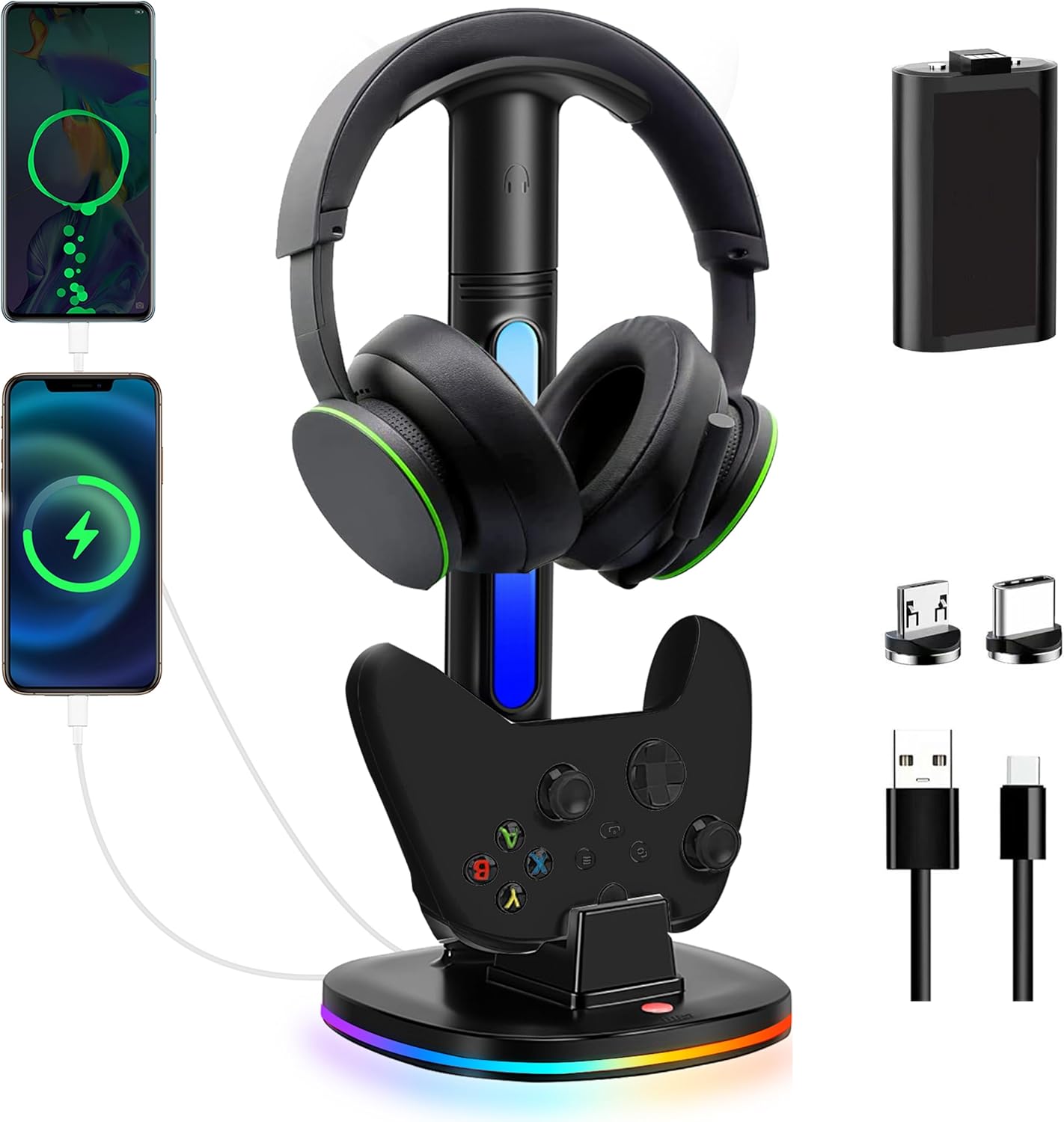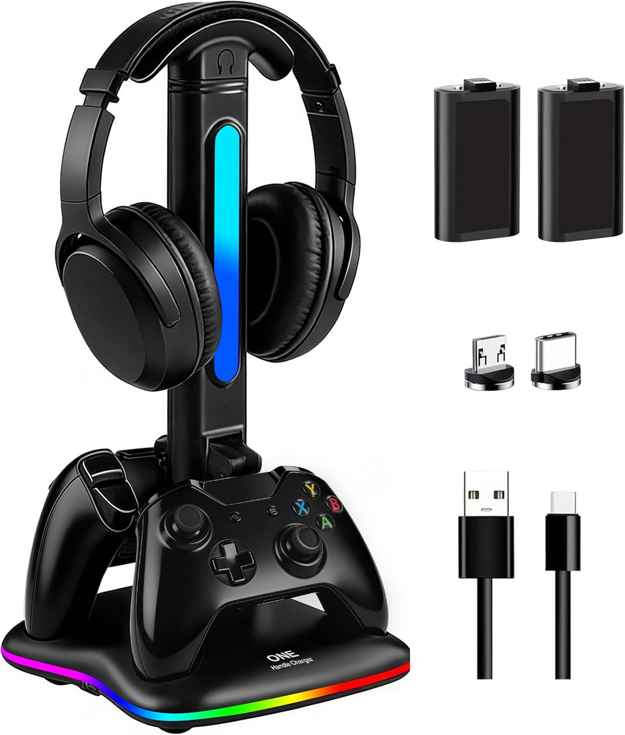 | BuiltIn Media | 1 x controller charger with headset stand, 4 x charging heads, 1 x Type-C charging cable, 1 x user manual |