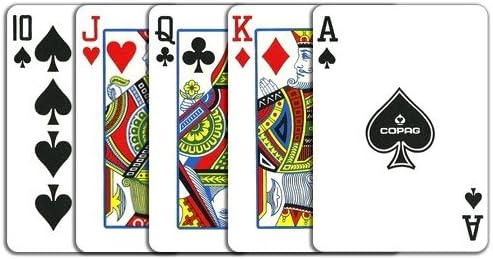Copag 100% Plastic Playing cards in two deck set. These Cards are part of the "Gold Line" and are manufactured in high-quality PVC. Internationally recognized for its exclusive formula which ensures a smooth handling. They are non-transparent, waterproof and highly durable. Card Size Bridge Standard Index 110 cards (2 decks of 52 cards + 4 jokers + 2 guarantee cards)