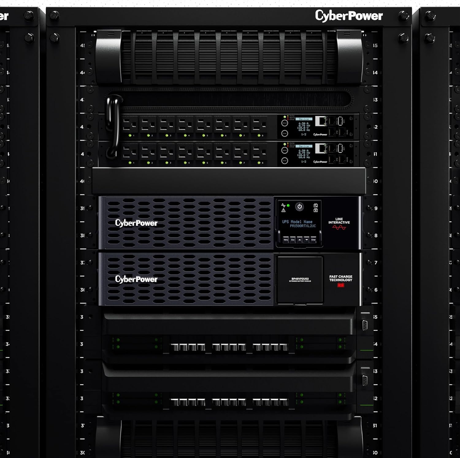 The PR1500RTXL2UC is a Smart App Sinewave rack/tower convertible UPS with line-interactive topology, surge protection, and battery backup. CyberPower’s Smart App Sinewave series has sine wave output to eliminate power gaps that can be detected by sensitive equipment and cause unexpected shutdowns. The Smart App Sinewave PR1500RTXL2UC improves battery life through battery equalization technology and Automatic Voltage Regulation (AVR), which corrects minor power fluctuations without switching to battery power. The enhanced chassis design with an easy-to-access toolless front panel, captive screws for battery panel access, and color-coded rear panel make battery changes and installations simple and fast. The PR1500RTXL2UC also has an innovative LCD panel that rotates 90°, tilts for a better viewing angle, and provides information on 47 different settings including UPS stats, UPS setup and control management, and testing options. This model accepts the BP48VP2U02 Extended Battery Module (EBM) for expanded runtime during power outages and the RMCARD205 network management card for remote management and control via a standard web browser or network management system. Built-in cloud monitoring. With a $400,000 connected equipment guarantee and a three-year warranty, you can trust CyberPower’s commitment to the quality of the PR1500RTXL2UC.