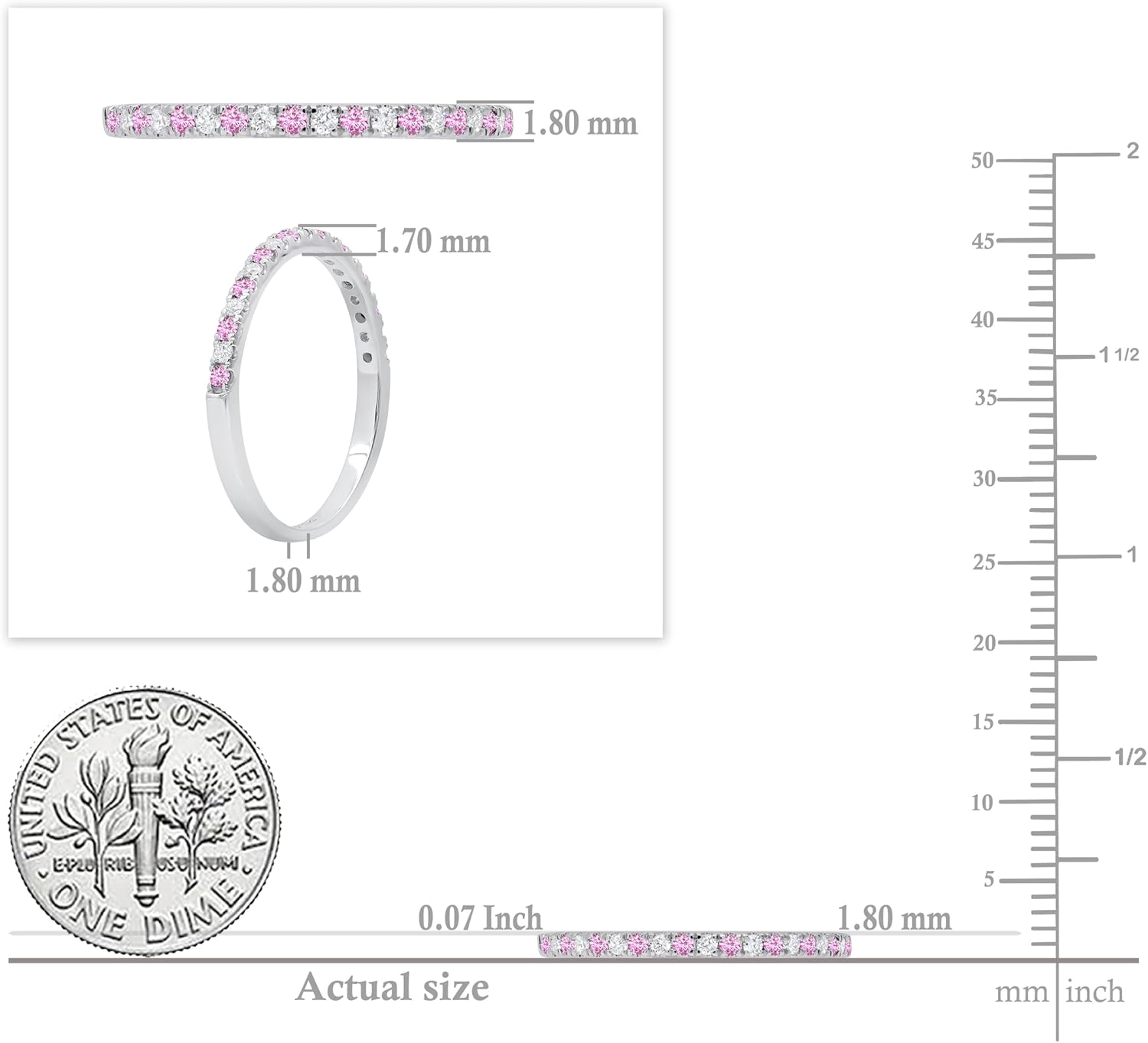 This lovely Wedding Band features Round Pink Sapphire(s) & White Diamond(s) in Prong Setting.All stones are sparkling.All our products will come with a jewelry box for safekeeping and presentation.SKU # DR13785-7757-P