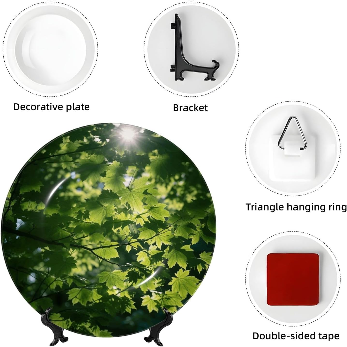 gokays decorative platedo you feel that your table is monotonous? Then use our decorative plate to add a little fun to the monotony of life.featuressize - 6 inch diameter;7 inch diameter;8 inch diameter;10 inch diametermaterial - ceramic design - Lighting the Leaves package - 1 x ceramic decorative plate, 1 x stand, 1 x pothookwhy choose gokays decorative plates?advantageas manufacturers we follow current trends and bring you the latest home fashion. Salad plates ideal for placement at home or in the office. Traditional porcelain making technology, fine workmanship. Ceramic dinner plates is a good gift for family and friends.convenient to useour dinner plates rack for display has 2 ways to use, you can just place the bracket base on a flat surface first, and then put the plate on it, also you can stick the provided pothook at the back of the plate, and then stick the plate on the wall, you can choose the suitable installation method according to the actual situation.occasionour ceramic ornaments salad plates is a perfect decorative and collection for any niche, table, or mantle at your home. Perfect for your office, home, living room, dining room, playroom, kitchen, cafe, study, studio, club, bar, and others.in a surprise for your family and friends!porcelain dessert plates is a perfect gift for any person in your life. You can give it directly to your lover as mother's day gift/father's day gift/birthday gift/christmas gift/valentines day gift/anniversary gift/wedding gift/housewarming gift/new home gift.start with our funny decorative plate, refresh your rooms!