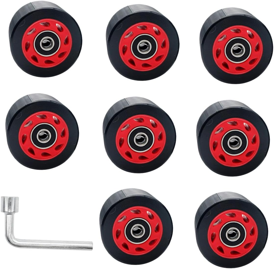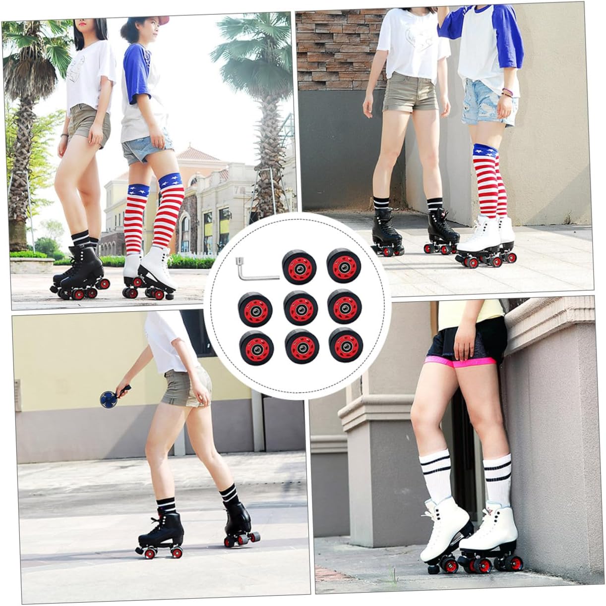 Package List 8 x Skating Wheels 1 x Wrench Features -Size: 5.80X5.80X3.90cm/2.28X2.28X1.53in -Color: As Shown -Material: PU -Product Info:Speed ??skate shoe wheels -Made from durable material, designed to provide good grip and speeds in all hardness, and has excellent durability. -With the fine material and fine workmanship, it . -The built-in speeds sleeve allows the bearing to rotate at high speeds to give you a more comfortable and smooth sliding experience quad skates wheels. -With 95A hardness, offering grip and durability. These roller wheels are competition quality and formulated to roll smoothly while providing a fantastic grip on the rink floor roller skates wheel. -Great props to cultivate outdoor sports interests and sports skill bearings roller skates.Goods Informationdouble row wheels You can change the old one.Practical Roller Wheels Double row wheels can protect from injury.roller skating wheel This is skates wheels, specially designed for the double-row roller skate.roller skates replacement wheel Good roller skating wheels for your choices.roller hockey wheels A perfect gift for .roller skate wheel Great props to cultivate outdoor sports interests and sports skill