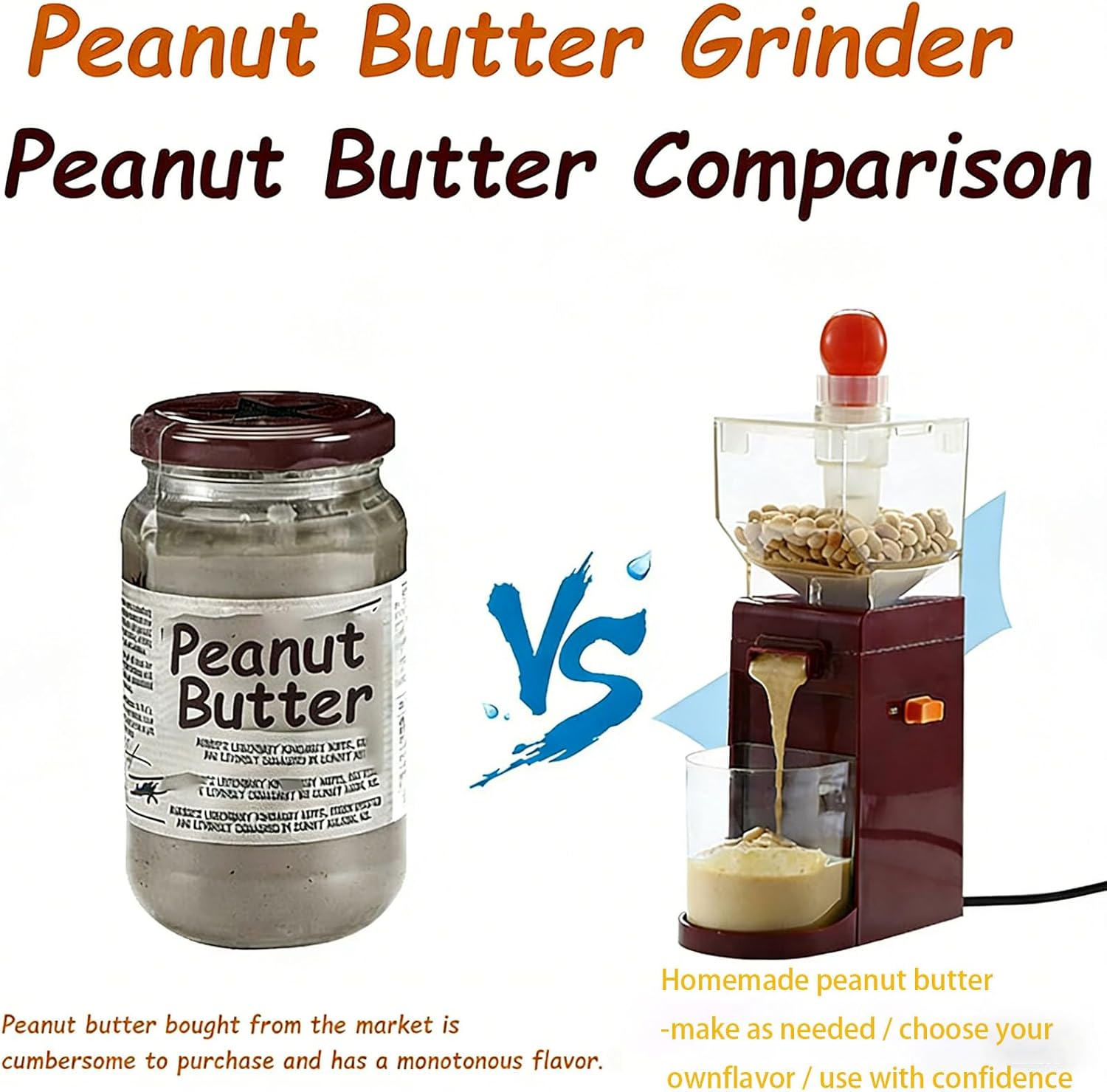 Product Description This compact electric peanut butter maker allows you to create fresh, natural nut butter at home with ease. Designed for peanuts, almonds, cashews, hazelnuts, walnuts, pumpkin seeds, sunflower seeds, grains, and spices, it delivers smooth or chunky textures through powerful grinding performance. You can customize flavors with honey, chocolate, cinnamon, or salt to create healthier spreads, making it ideal for families, fitness enthusiasts, and home-cooking lovers. Product Specifications ♥ Product Name Electric Peanut Butter Maker ♥ Material ABD + Polycarbonate ♥ Idle Power Approx. 70W ♥ Load Power Approx. 120W ♥ Idle Torque 30–40 mN·m ♥ Load Torque 70 mN·m ♥ Suitable Materials Nuts Seeds Grains Beans Spices ♥ Function Grinding and Butter Making ♥ Application Home Kitchen Use Packing List ♥ Grinder ×1 ♥ Detachable Container ×1 ♥ Grinding Disc ×1 ♥ Instruction Manual ×1 Notes The motor speed is relatively high; avoid running the machine without load. Do not use hot peanuts; allow roasted peanuts to cool before grinding. Do not operate continuously for long periods; stop after 5–10 minutes and allow cooling before reuse. Overheating may cause damage to the machine if used excessively. Use only with dry ingredients for best performance and durability.