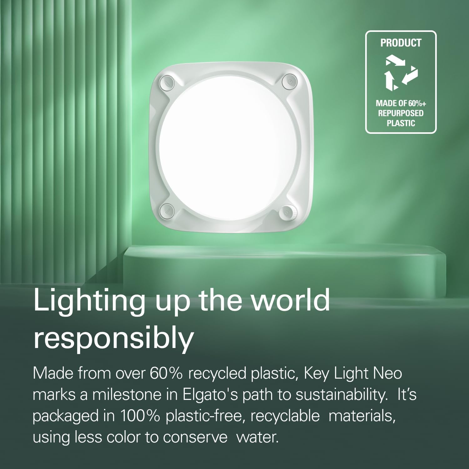 Great impressions made easy. Key Light Neo plays beautifully with webcams, making you glow with confidence the moment you turn it on. Plus its edge-lit design eliminates glare, so you can stream or video call for as long as you want. Just connect it to your laptop, plop it on your monitor, and look pro every time you’re online. Technical Specifications Brightness USB-A (4.5 Watt): 400 lm USB-C (7.5 Watt): 700 lm 3A power supply: 1000 lm Color range: 2900 – 7000 K CRI: > 94% Power consumption: up to 15 W Connectivity: USB-C or WiFi (2.4 Ghz, 5 Ghz) Dimensions: 1.49 x 5.9 x 5.9 in / 138 x 150 x 150 mm (depth x width x height) Weight: 246 g System Requirements USB port on notebook or power supply Wi-Fi mode (optional): Windows 10 (64-bit) or later / Android 6.0 or later macOS Monterey 12 or later / iPadOS 12 / iOS 13 or later Internet connection