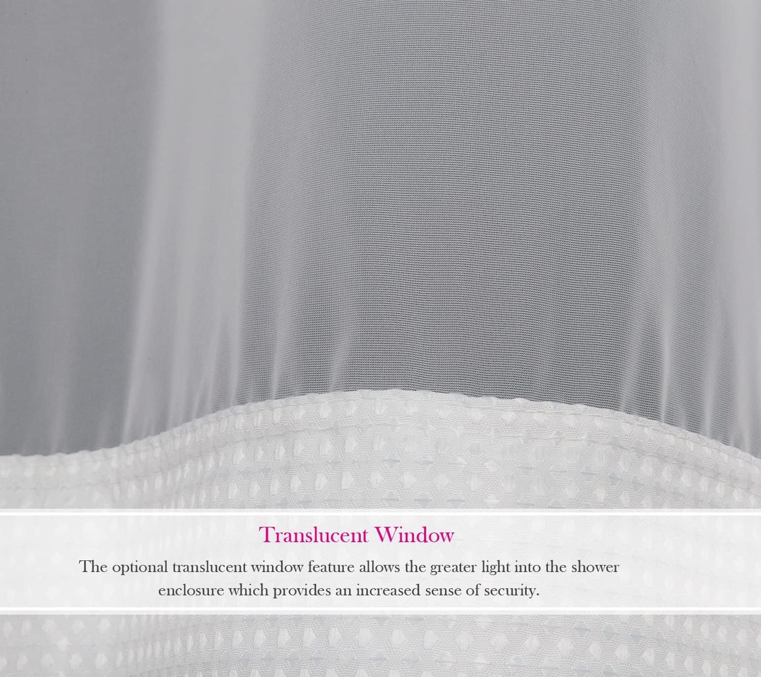 QKHOOK brings you high quality fabric hook less shower curtain with snap in liner, the neutral white color suits any decor style.PRODUCT DESCRIPTION- Package includes: 1 pc no hooks shower curtain with snap in liner, it has two layers, the outer layer is white waffle pattern fabric, the inner layer is water resistant, removable and replaceable.- Color: White.- Dimension: 71x74 inch.- Outer Layer Fabric Features: Made from high quality polyester fabric, waffle pattern.- Inner Layer Fabric Features: Made from high quality specially processed polyester fabric, which has excellent water resistent effect.- Patent Grommet Design: Top of the shower curtain is grommet style, easily to hang it.- Covered Buttons Design: 12 pcs snap in buttons, quickly to remove the liner for wash or replacement.- Light filtering Mesh Window: Mesh window at head levels to transmit light into the shower area, create a dry and clean environment.- Lining Bottom Ultrasonic Hem Design: The unique stitch free hem at the bottom allows water to run off easily.HOW TO CARE- Specially designed to be machine washed makes the shower curtains cleaning extremely easy. Fabric stays crisp after multi washes. Shrink resistance, easy to clean and maintain.RETURN POLICY- If for any reason you are not satisfied, send a simple email and receive a fully refund, absolutely no questions asked!