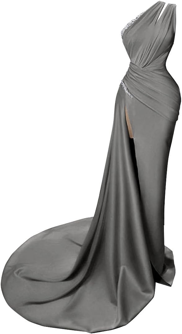 Item Description: This satin beaded one shoulder slit long dress is very sexy and comfortable. The fabric is satin with soft and straight features, which is mostly used in women's fashionable special occasion dresses such as Formal,Prom,Bridesmaid,Evening,Party,Wedding Custom Made: Dresses can be made according to your measurements with no more charges,the measurements we need is:1.Bust 2.Waist 3.Hips 4.Hollow(or Shoulder) to Hem 5.The height of your high heel shoes 6.Shoulder to Bust.after you place the order,please send us your measurements and order id Product Name: One Shoulder Satin Prom Dresses with Beaded High Slit Formal Bridesmaid Evening Party Dress with Train Occasion:Bridesmaid Prom Coktail Party Wedding Evening Item Type:One Shoulder Satin Prom Dress,Split Formal Dress,Evening Gowns with Beads and Pleats Waistline:Natural Decoration:Crystal Beaded Fabric Type:Satin Back:Lace up Back Train:Side Train Dresses Length:Floor Length Silhouette:Sheath Neckline:One Shoulder Sleeve Length:Sleeveless