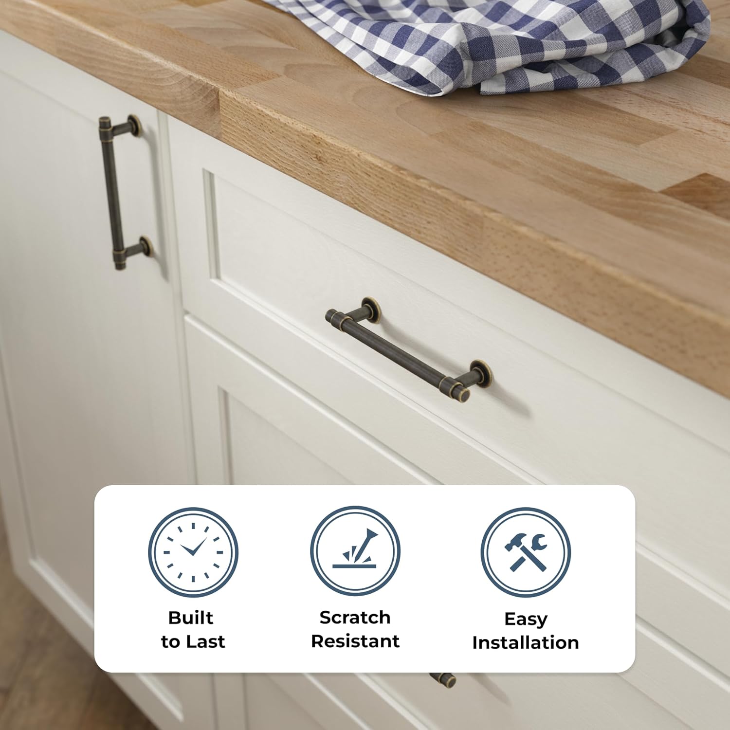 Product Description Enhance the look of your kitchen, bathroom, or any furniture piece with the Franklin Brass Francisco Cabinet Handles. Designed to blend seamlessly with various decor styles, these Warm Chestnut cabinet pulls offer a chic, understated elegance. Whether you're upgrading your kitchen cabinets or adding a stylish touch to your dresser drawers, the Francisco collection provides a durable and affordable solution. These cabinet handles are crafted from robust metal, ensuring they withstand daily wear and tear. The Warm Chestnut finish is not only visually striking but also resistant to fading and scratching, making it an ideal choice for high-traffic areas. Available in a convenient 10-pack, these cabinet pulls come with all necessary mounting hardware, including (20) 1” screws, for a straightforward installation. With a 4-inch hole center, they are designed to fit standard cabinet sizes, allowing for a seamless integration into your home. Elevate your space with Franklin Brass Francisco Cabinet Handles—where quality meets style at an affordable price. From the Manufacturer Inspired by vintage industrial architecture, the Francisco Pull brings a sense of inspired beauty into any room in your home. Perfect for casual cabinetry and furniture, it is crafted from die cast zinc for long lasting quality and durability. Installation hardware is included.