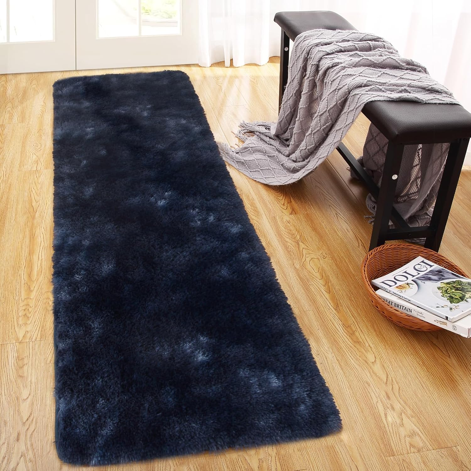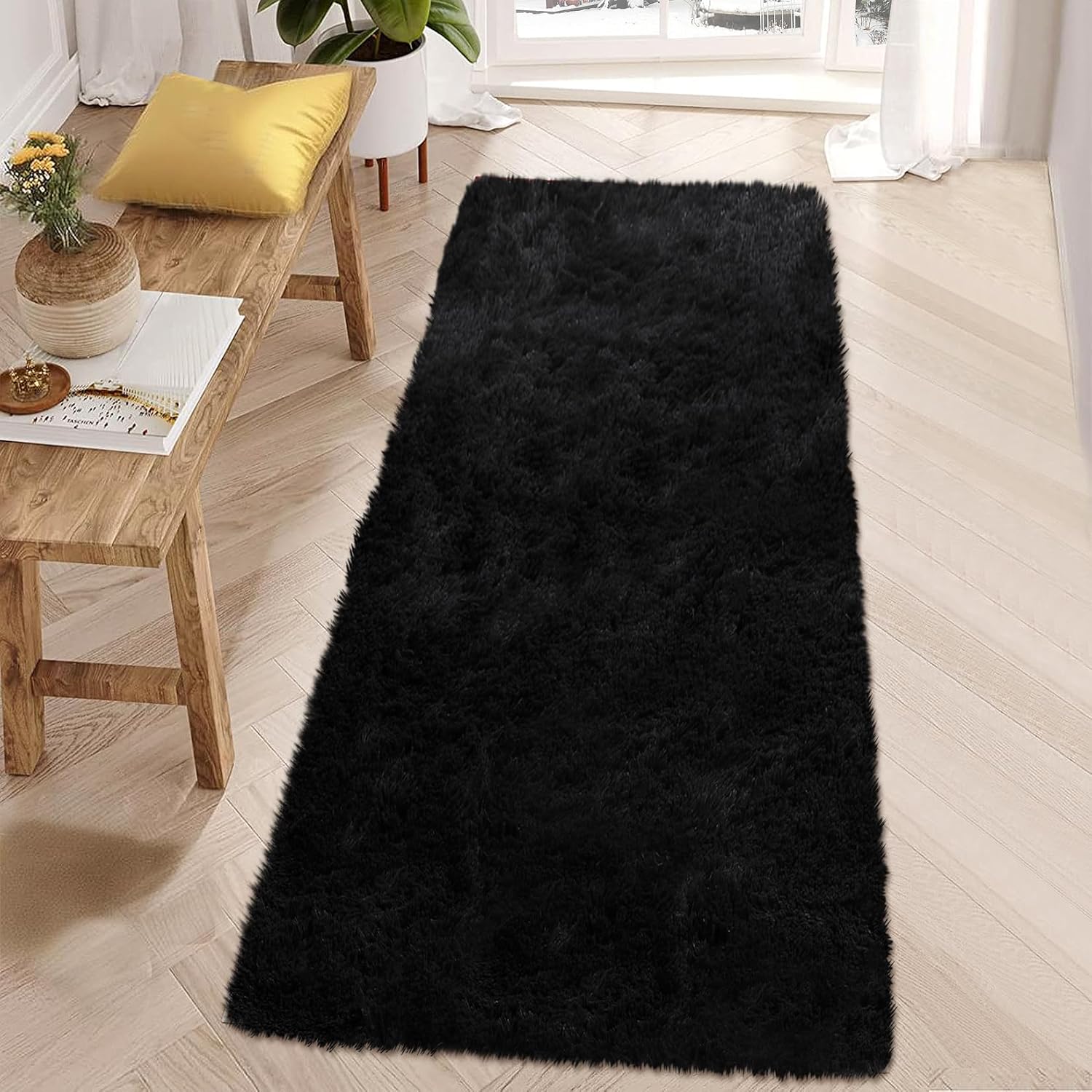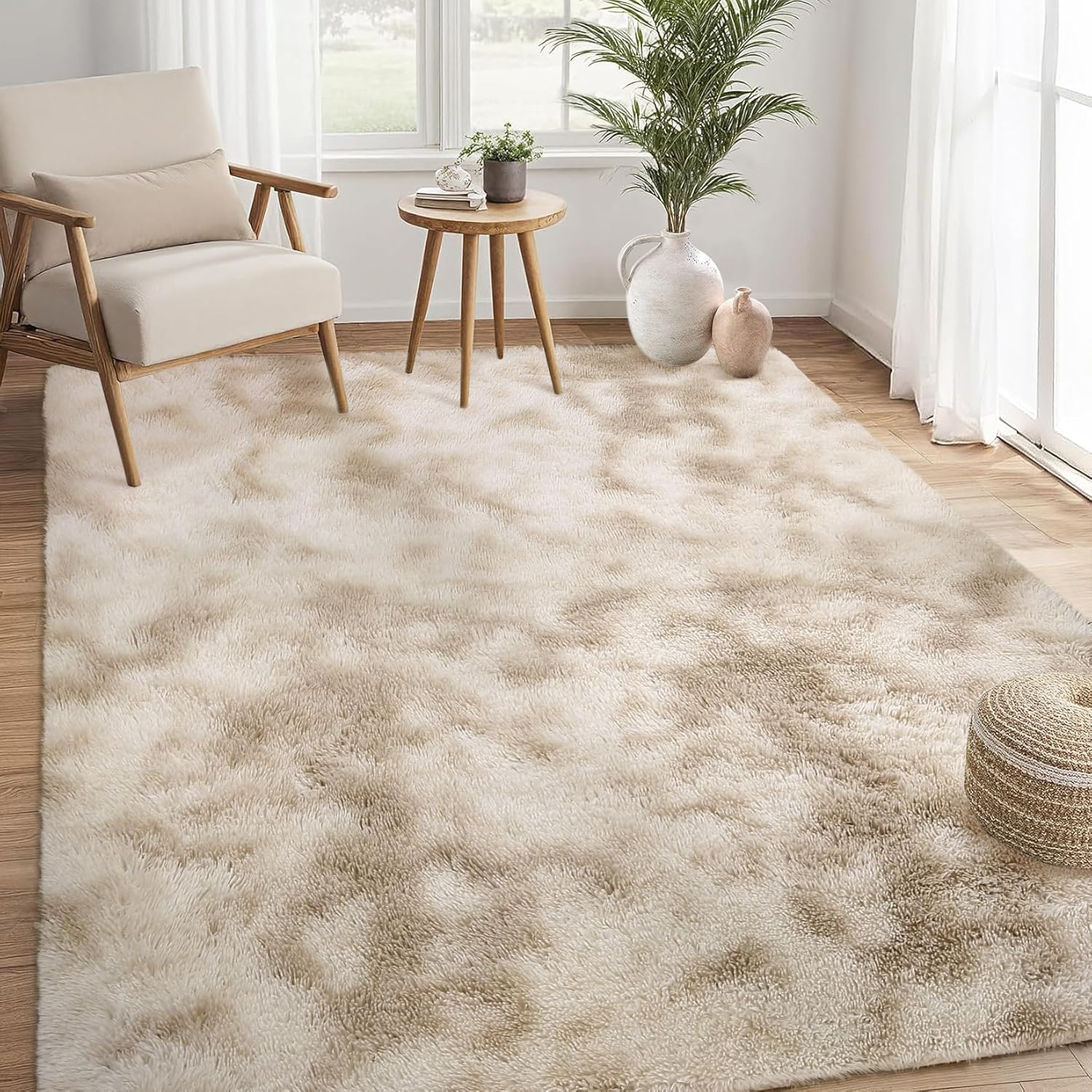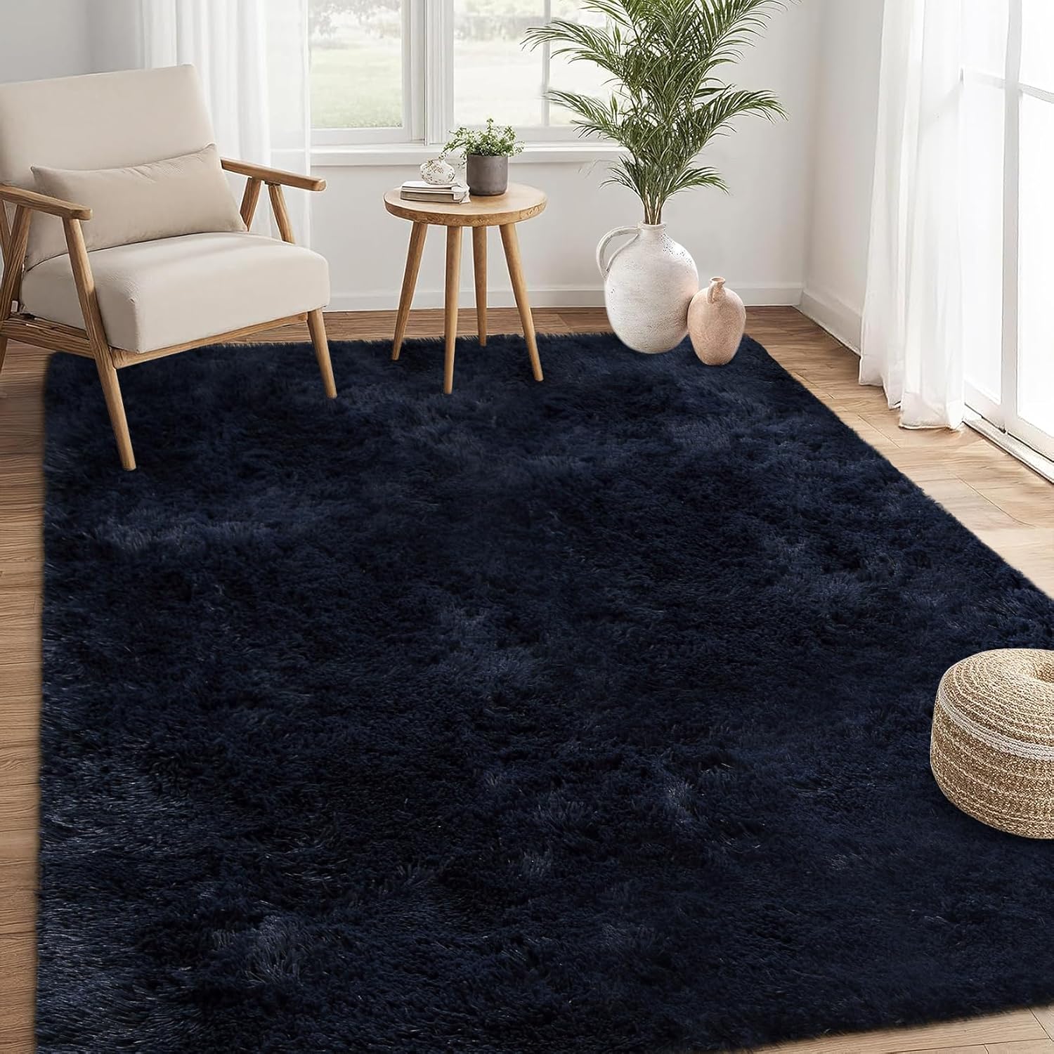 Soft Fluffy Area Rug, Perfect Home DecorThe fluffy shag area rug is very soft to touch and has a non-slip backing to keep your family and kids comfortable and warm while playing on the floor. Our shaggy area rug is richly colored and an ideal choice for home decoration.4cm high velvet pile and a dense sponge layer in the middle that provides high-level coziness, soothe tired muscles. It's like lying on a cloud, bring you to fall into wonderful dreams easily.Our area rug was designed to last for years to come! This extremely soft fluffy velvet carpet is made from safe polyester material. You could feel free to lay on it, barefoot walking, and good for tummy time. Soft high pile adds a touch of luxury, no odor, not easy to fade and not easily contaminated by dust. Our rug is veryfor your living room decoration. Luxurious design, matching different style, dress up your home.It's a pretty decent size, perfect for right along the side of your bed, perfect for nursery decor, girls boys room, bedroom, living room, study, college dorm, under coffee table and front of your sofa.