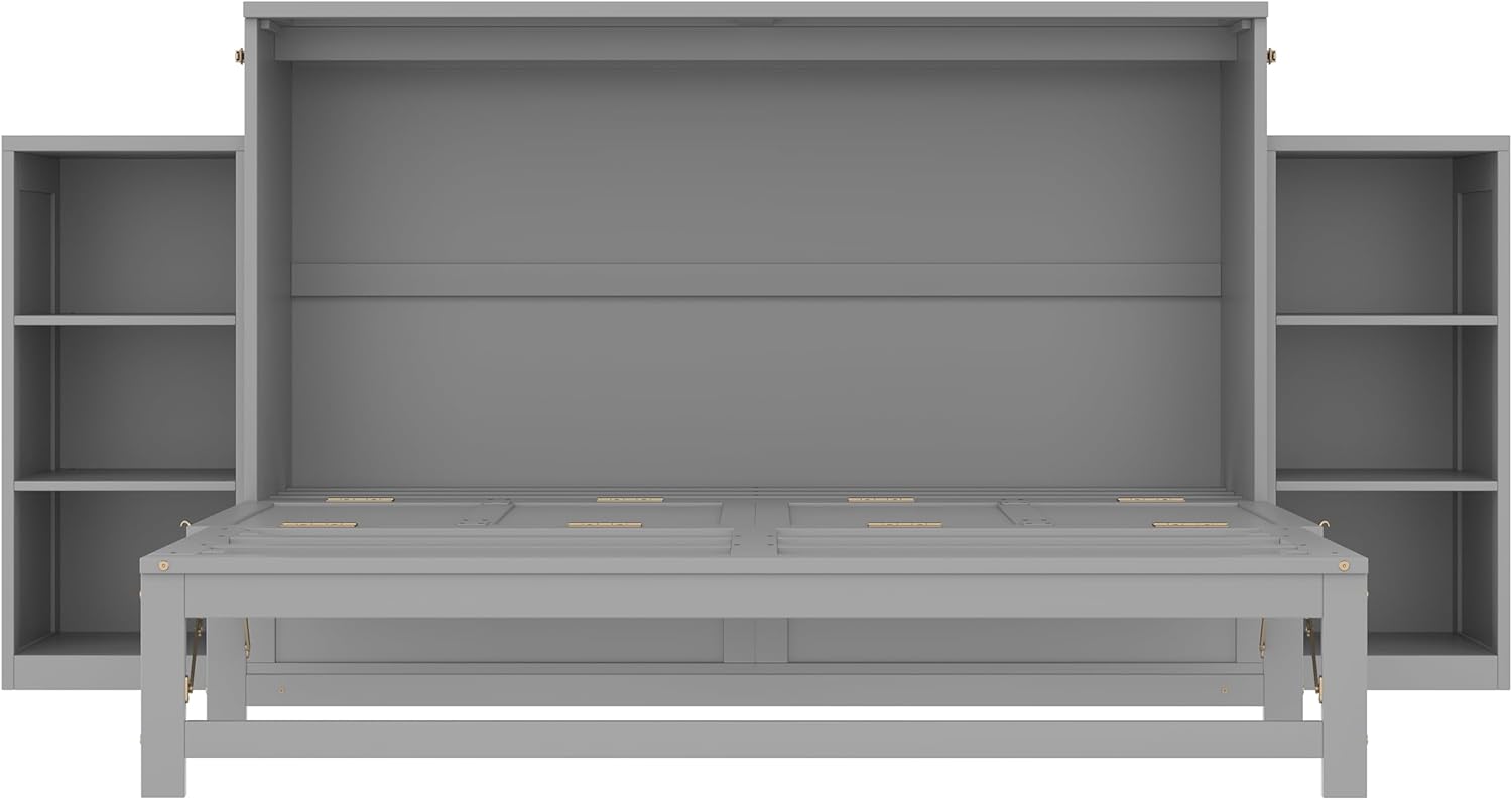 Fuse comfort and sophistication with this versatile bed. Crafted from wood, the murphy bed features 2 storage shelves and when it is closed, the piece resembles a storage cabinet. The door opens up to reveal a mattress, making it the perfect piece for saving space and offering a place to rest for overnight guests. Weight & DimensionsDescription Material: Pine Wood+MDF Size: Queen Color: Gray Numbers of Package: 2 Spring Box: No need Assembly Required: Yes Origin: Vietnam Dimensions Overall Product Dimension: 120''L x 80.5''W x 31.7''H Queen Bed: 79.7'' x 62.6'' Total Height: 31.7'' Recommend Mattress Thickness of Bed: 8''-10'' Overall Product Weight: 133lbs Bed Weight Capacity: 600lbs