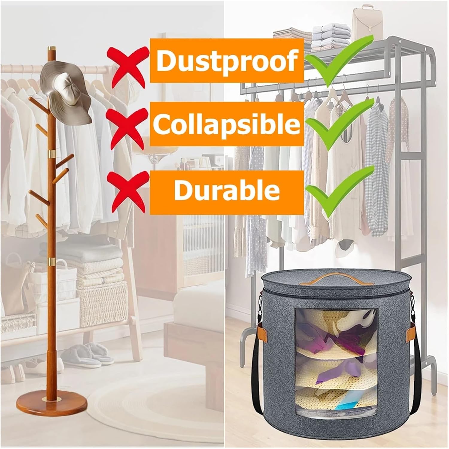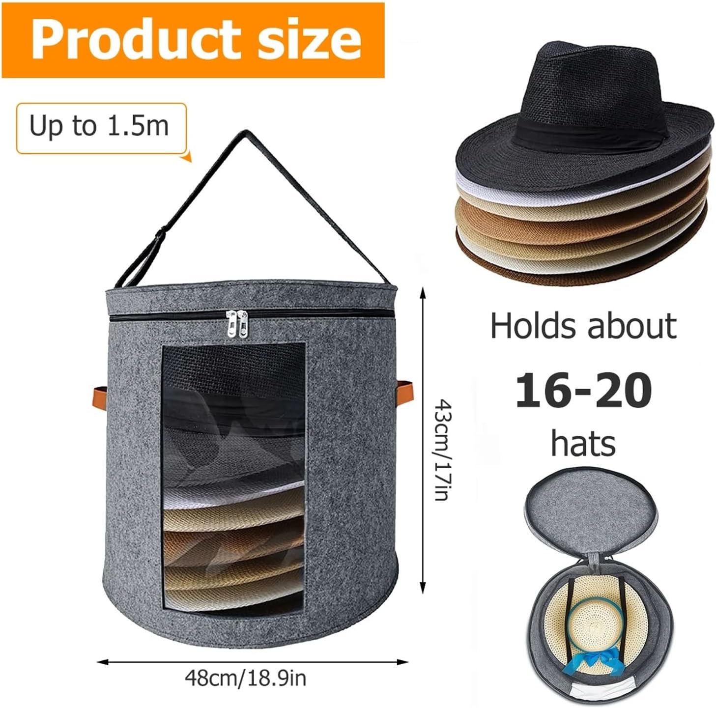 Practical Gift For Hat Enthusiasts: Serves as a functional thoughtful storage solution for individuals who collect and wear caps and works as a suitable gift option for birthdays seasonal holidays and all special commemorative eventsSpecification:Product Name: Hat Storage BoxMaterial: FeltSize: 48 × 48 × 43cm / 18.9 × 18.9 × 17inNotice:1.1cm=10mm=0.39inch.2.Please allow 1-2mm error due to manual measurement and make sure you do not mind before ordering.3.Please understand that colors may exist chromatic aberration as the different placement of pictures.