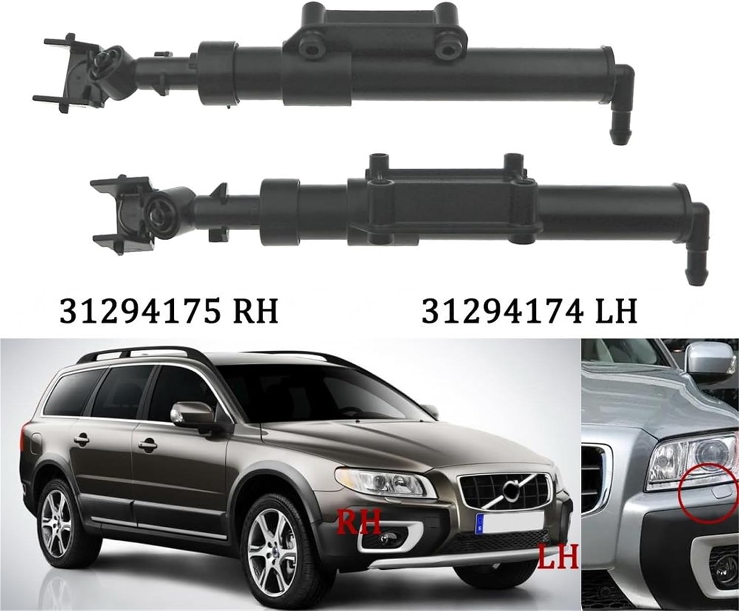 PartNumber:Washer Nozzle:31294174 LH31294175 RH Product DescriptionCompatible With Volvo XC70 II V70 III S80 20092015 Color : black Interface Type : NoneVoltage : 12 V / 24 VItem Weight : 170GModel Name : 31294174 LH,31294175 RHOrigin : Mainland China