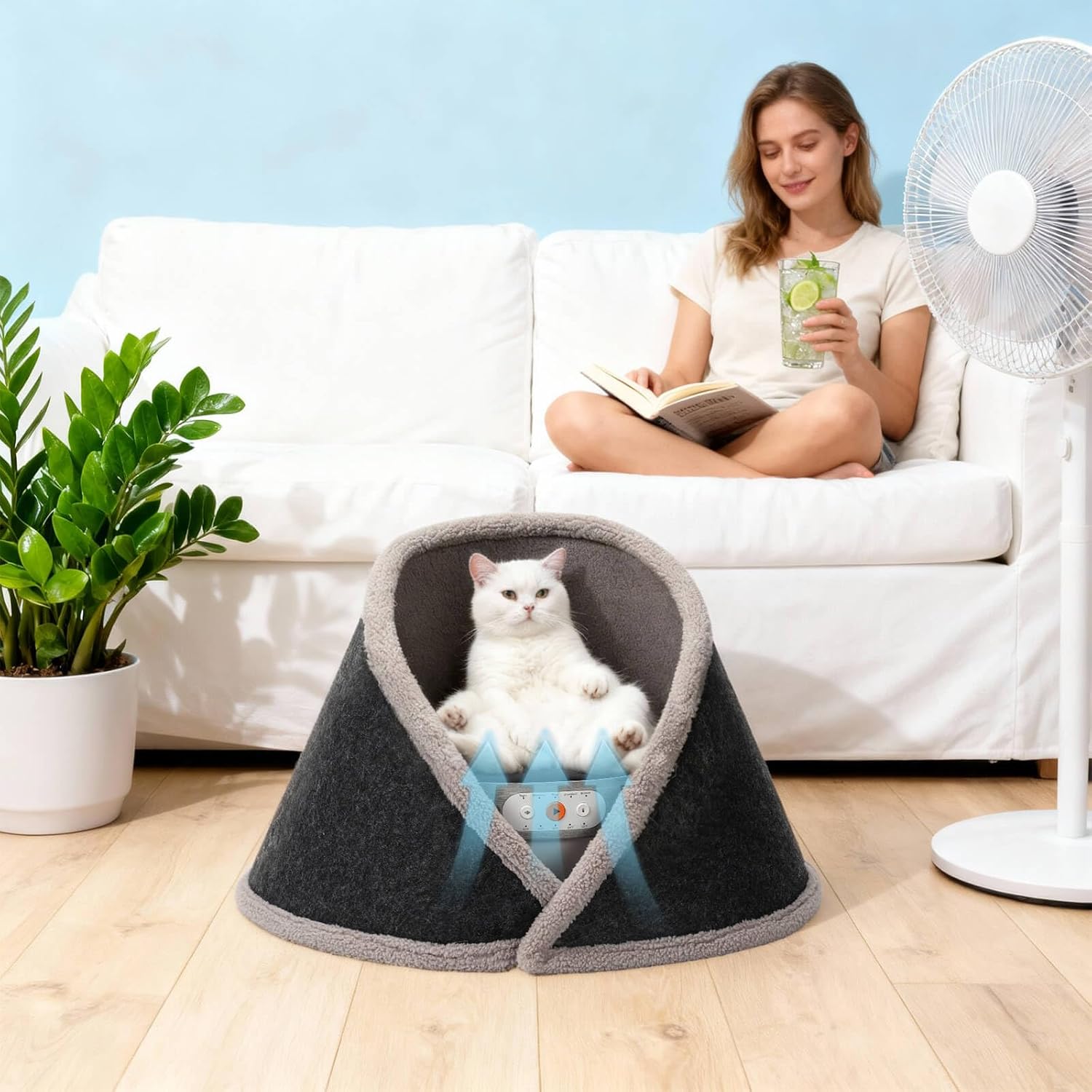 | Product Benefits | Provides heating, cooling, and calming sounds for cat comfort |