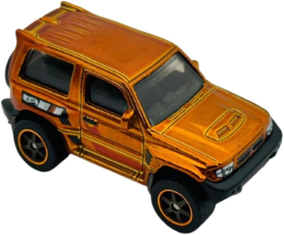 Rev up your die-cast collection with this stunning Hot Wheels Mitsubishi Pajero Evolution! Part of the HW J-Imports series and numbered 169/250, this Super Treasure Hunt edition features an eye-catching orange metallic finish that gleams from every angle. This 1:64 scale replica captures the rugged essence of the legendary Pajero Evolution, complete with precise details from its distinctive hood scoop to its muscular wheel arches. The model sports sleek black wheels with red accents that perfectly complement its striking paint scheme. As a Super Treasure Hunt vehicle, this particular casting offers premium features and exceptional detail that set it apart from regular mainline releases. Perfect for both dedicated collectors and young Hot Wheels enthusiasts, this miniature masterpiece brings the spirit of one of Japan's most iconic performance SUVs to your showcase.