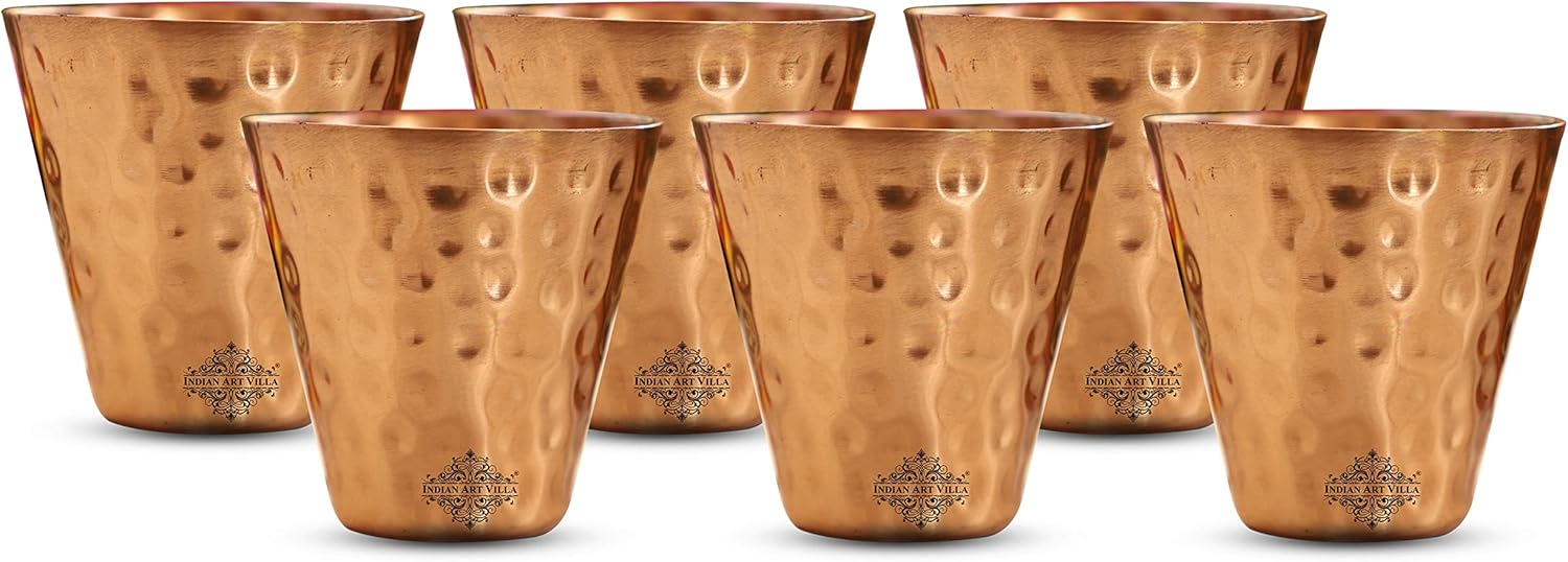 Indianartvilla copper items have antique designs. The item is highly durable, elegant, and a wonderful addition to your home decor. Copper enhance Your Home decor with this Beautiful elegant hammered Design Shot Glass, An authentic & wonderful gift, or return gifts for any occasion & all-important function. it will give classic look to your bar home restaurants hotel etc.