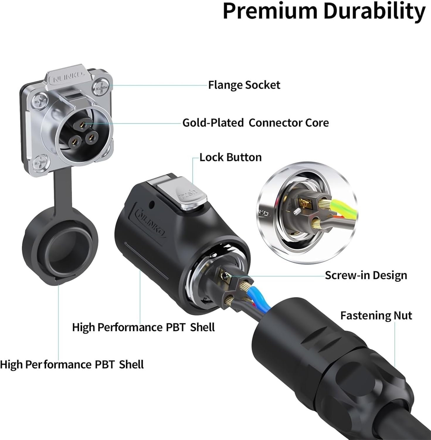 Connectors==========Model Number : LP16 screw locking seriesCertification : CE,RoHS,UL,weeeCable specification : 1.0mm²~1.5mm²/ 18-16AWGDiameter range : O.D 5mm~7mmInsulation resistance(Min.) : 500 m omegaContact resistance(Max.) : 3 m omegaCurrent rating : 10AOperating voltage (AC.V.rms) : 400VProtection level : IP68Withstanding voltage (AC.V)1 minute : 2000VWorking temperature : -25 degrees Celsius~+85 degrees CelsiusType : ConnectorApplication : LightingAssembly wire : Scew lockingMaterial : PBT+Zinc AlloyPins : 2 Pin